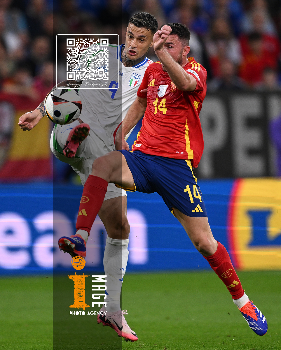 Mg Gelsenkirchen (Germania) 20/06/2024 - Euro 2024 / Spagna-Italia / foto Image Sport nella foto: Aymeric Laporte-Gianluca Scamacca