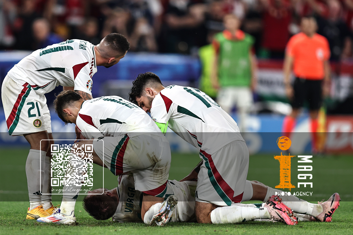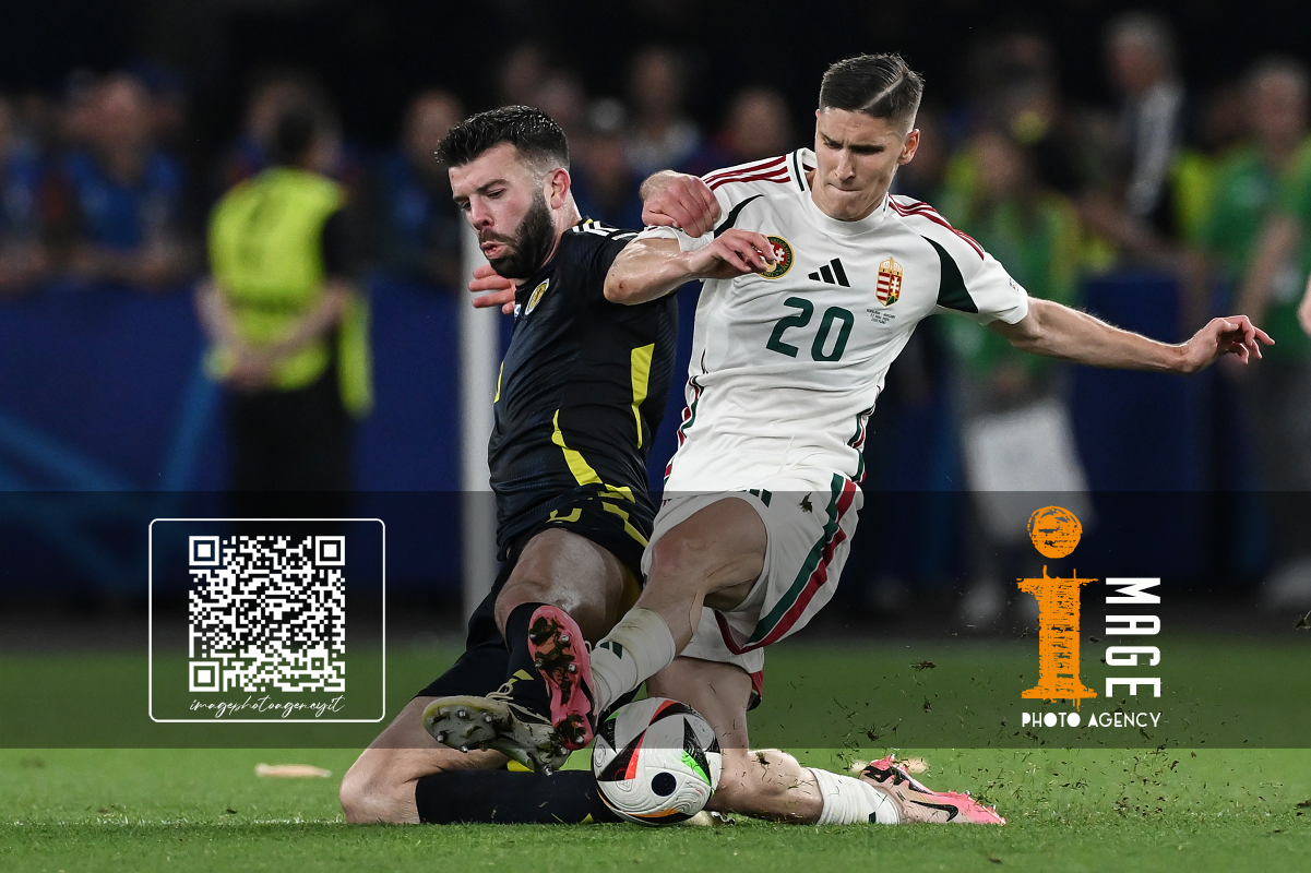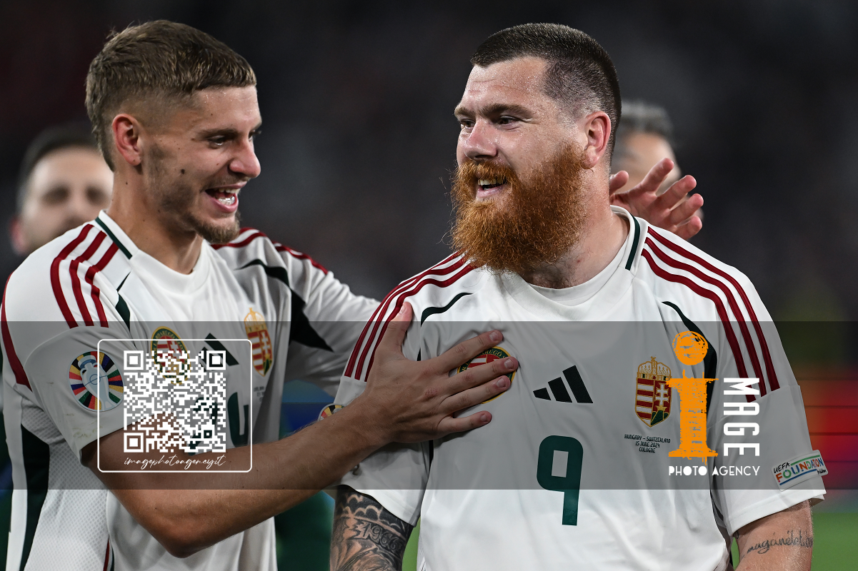 Db Stoccarda (Germania) 23/06/2024 - Euro 2024 / Scozia-Ungheria / foto Daniele Buffa/Image Sport nella foto: Andras Schafer-Attila Fiola-Marton Dardai