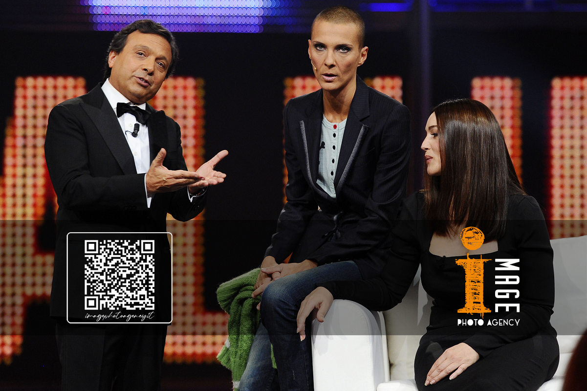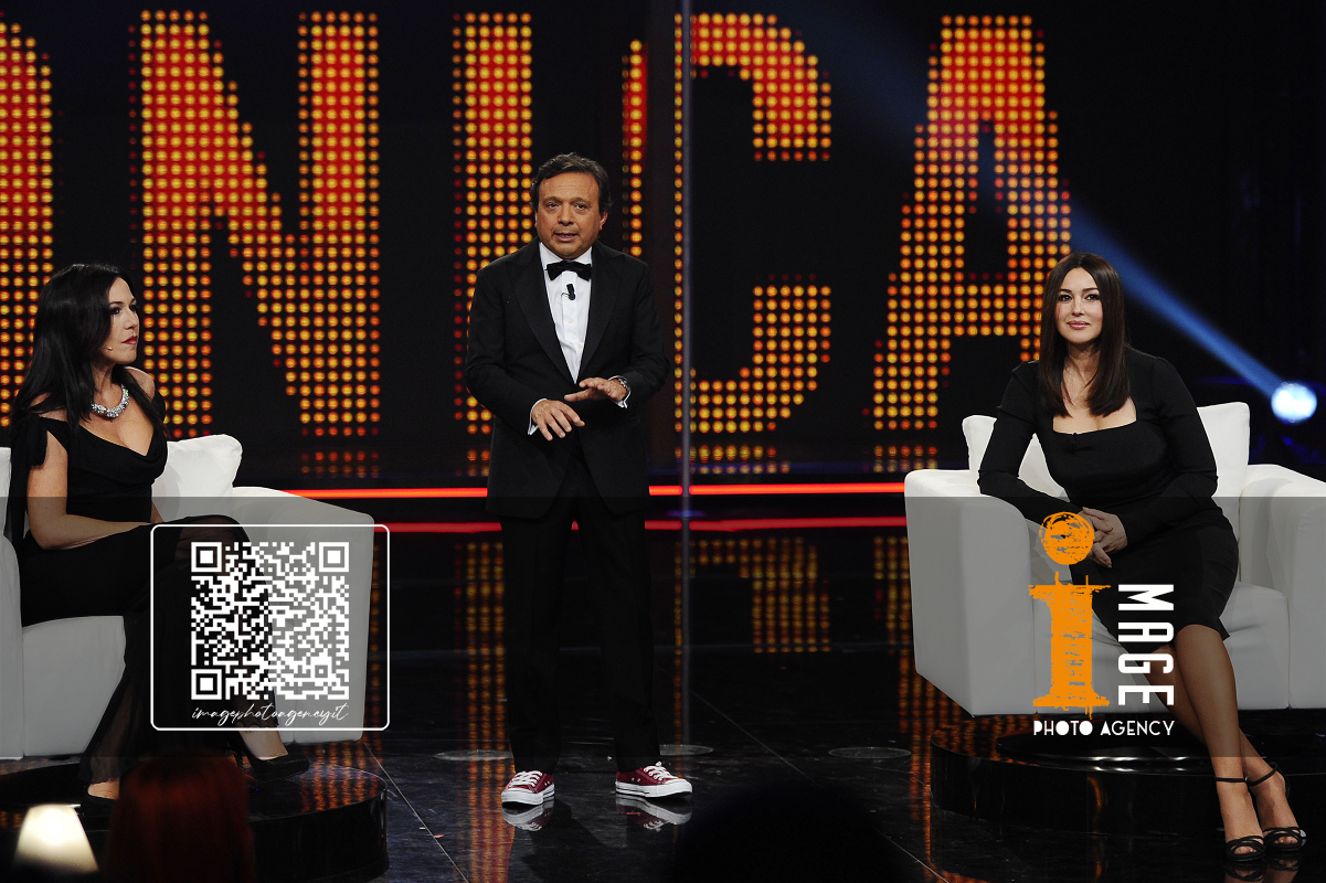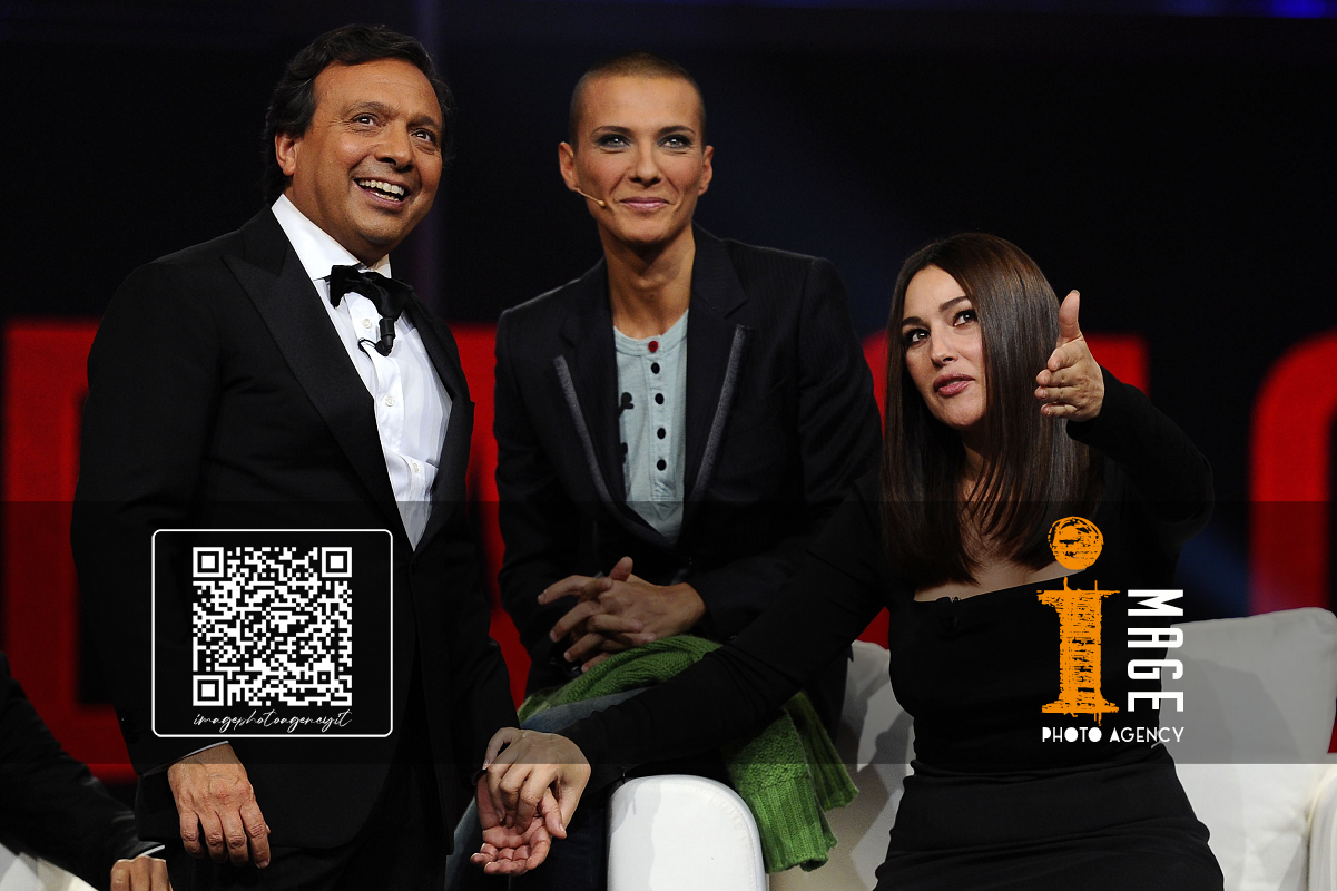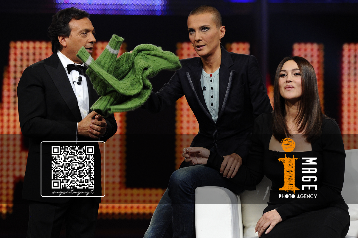 Gc Milano 26/10/2010 - trasmissione TV Chiambretti Night / foto Giuseppe Celeste/Image nella foto: Rosalinda Celentano-Piero Chiambretti-Monica Bellucci