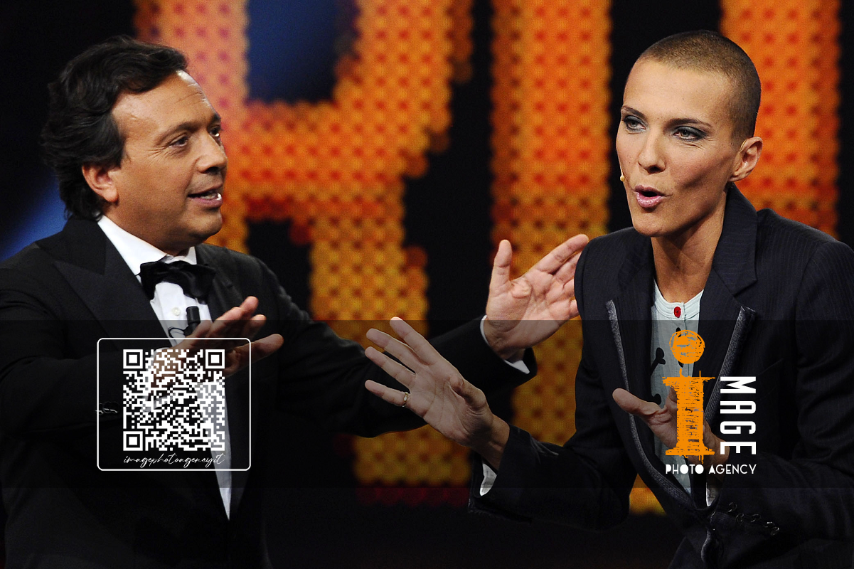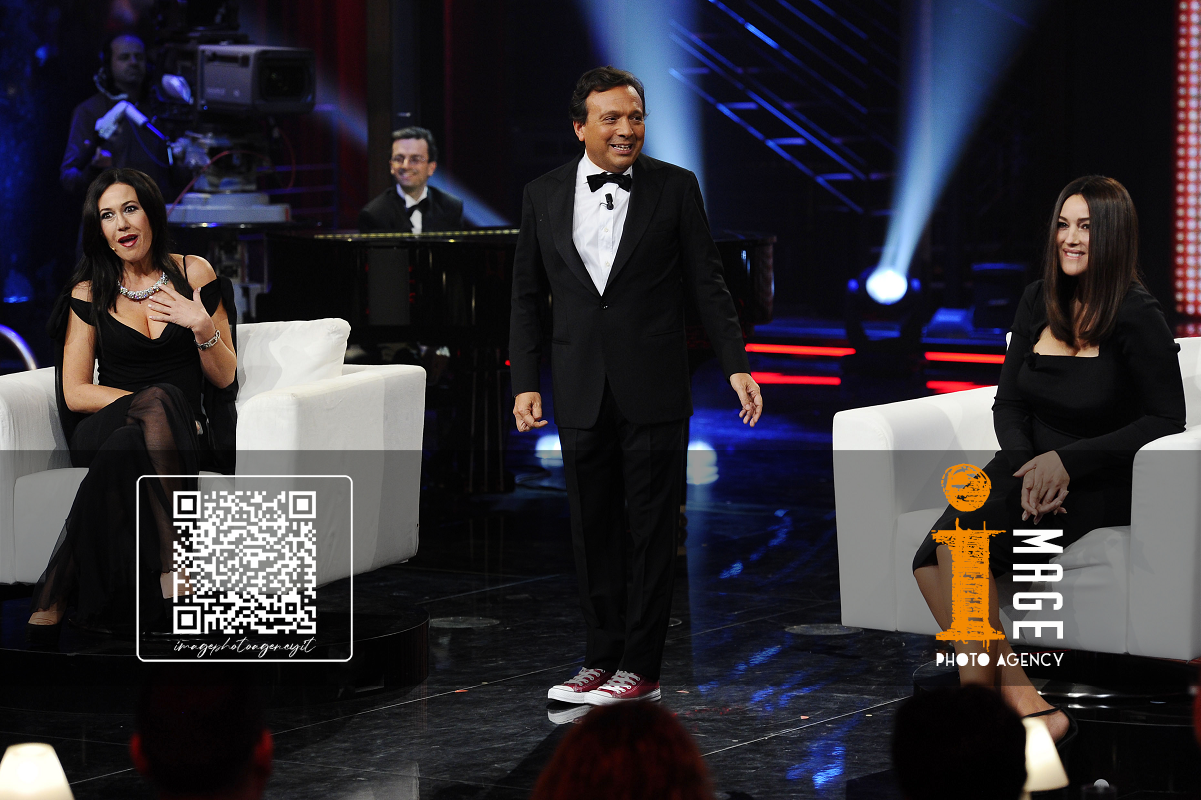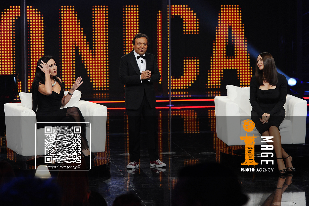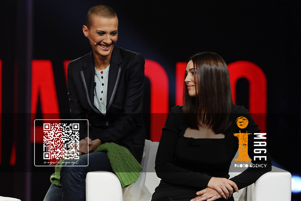 Gc Milano 26/10/2010 - trasmissione TV Chiambretti Night / foto Giuseppe Celeste/Image nella foto: Rosalinda Celentano-Piero Chiambretti-Monica Bellucci