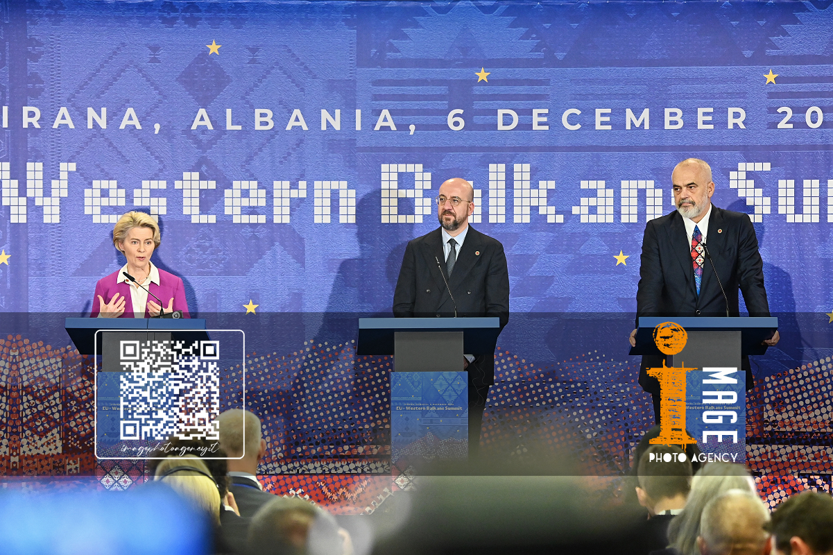 Tirana (Albania) 06/12/2022 - vertice Leader Eu Balcani Occidentali / foto Ufficio Stampa Commissione Europea/Image nella foto: Ursula von der Leyen-Edi Rama-Charles Michel