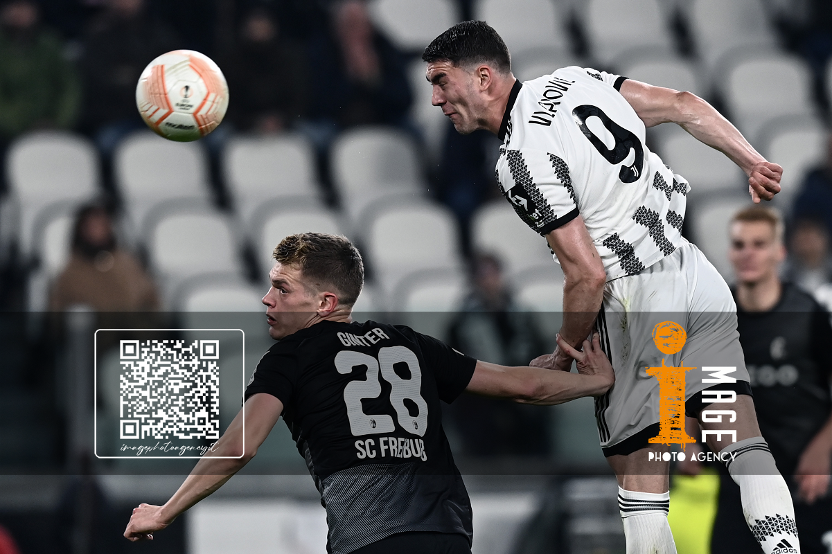 Mg Torino 09/03/2023 - Europa League / Juventus-Friburgo / foto Matteo Gribaudi/Image Sport nella foto: Vincenzo Grifo-Nicolo’ Fagioli-Manuel Locatelli