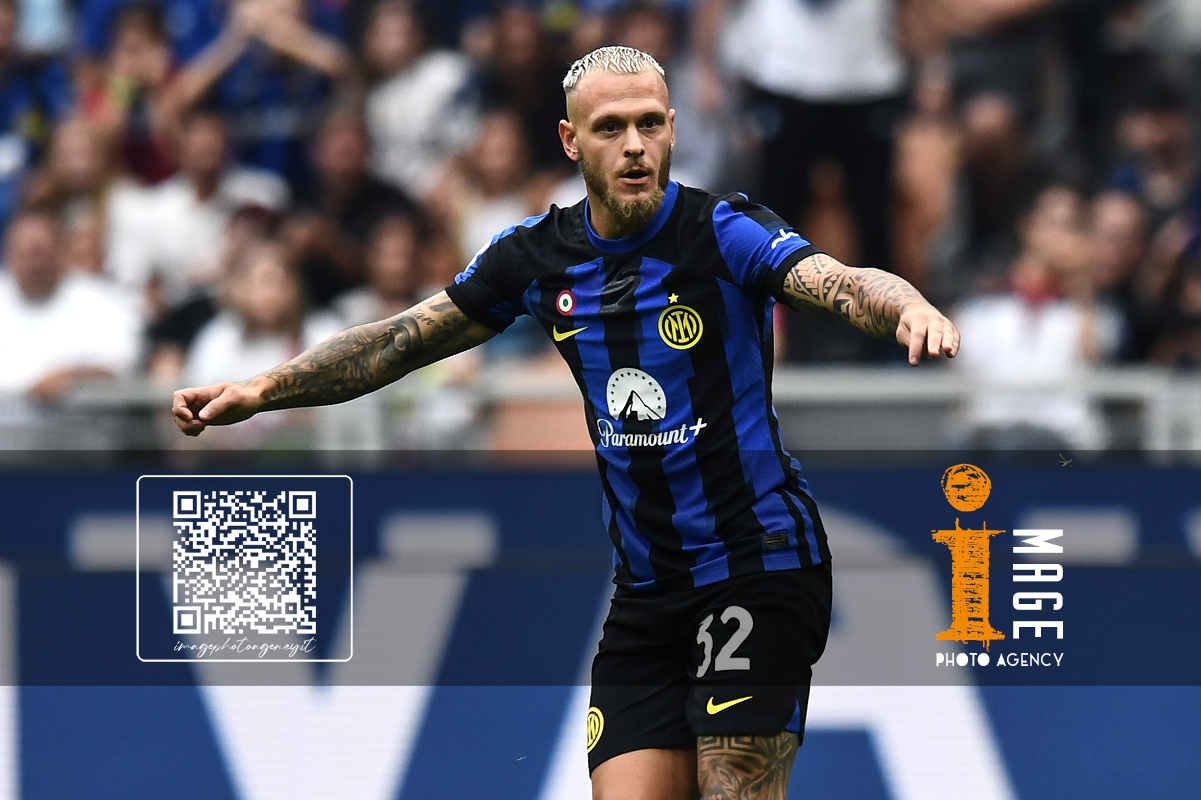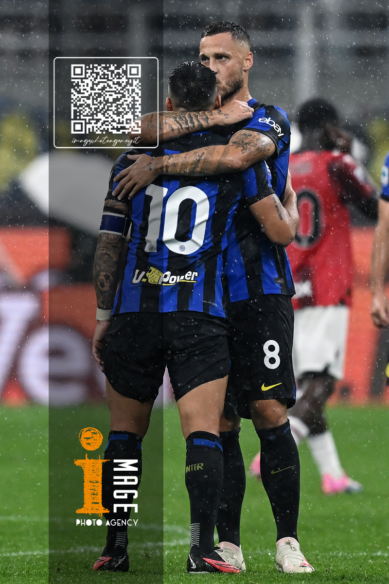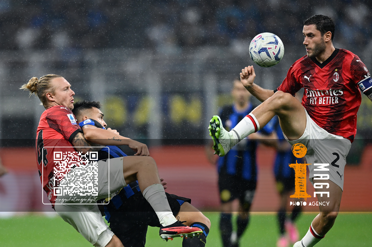Db Milano 16/09/2023 - campionato di calcio serie A / Inter-Milan / foto Daniele Buffa/Image Sport nella foto: Lautaro Martinez-Simon Thorup Kjaer-Davide Calabria