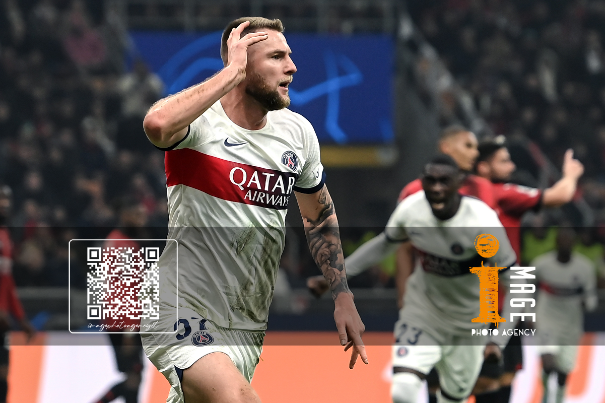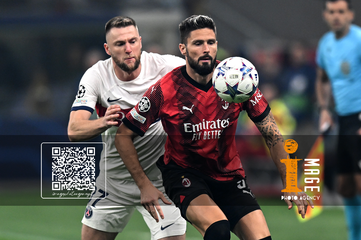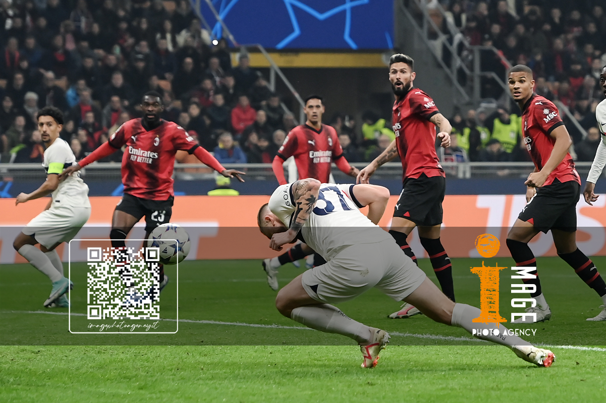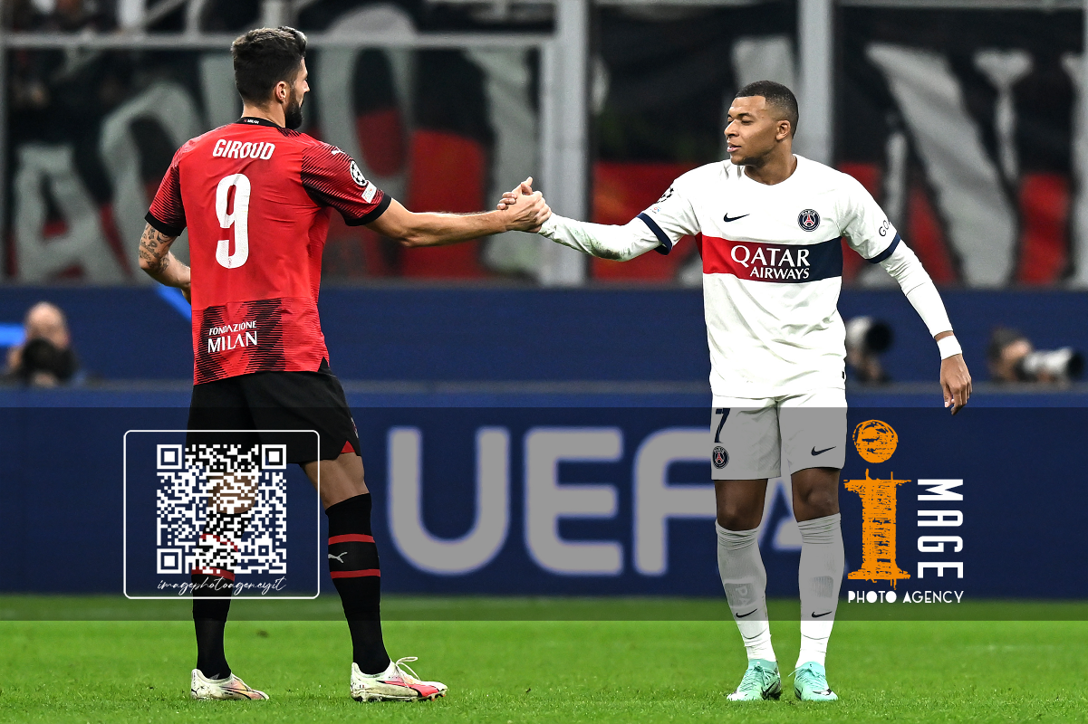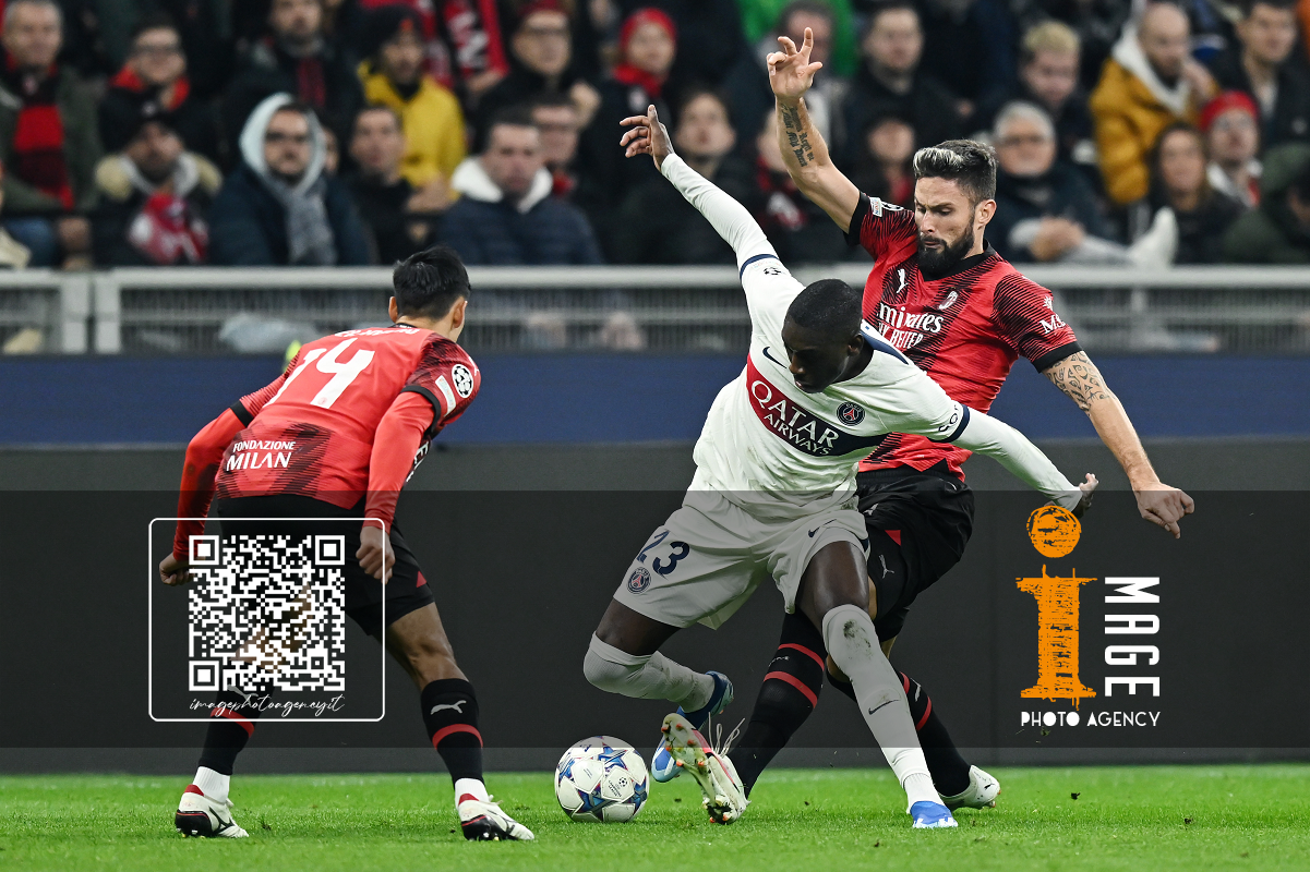 Db Milano 07/11/2023 - Champions League / Milan-Paris Saint Germain / foto Daniele Buffa/Image Sport nella foto: Randal Kolo Muani-Olivier Giroud-Tijjani Reijnders