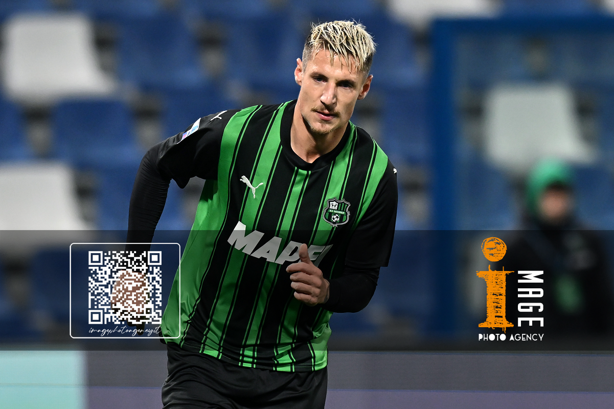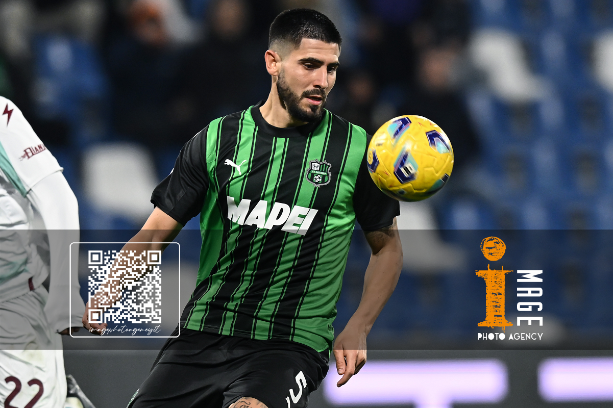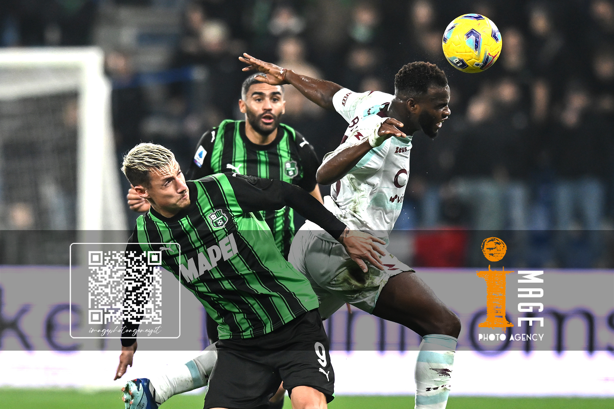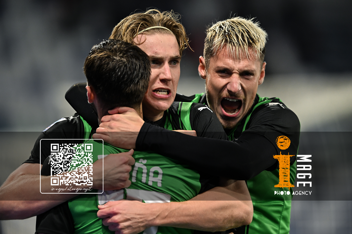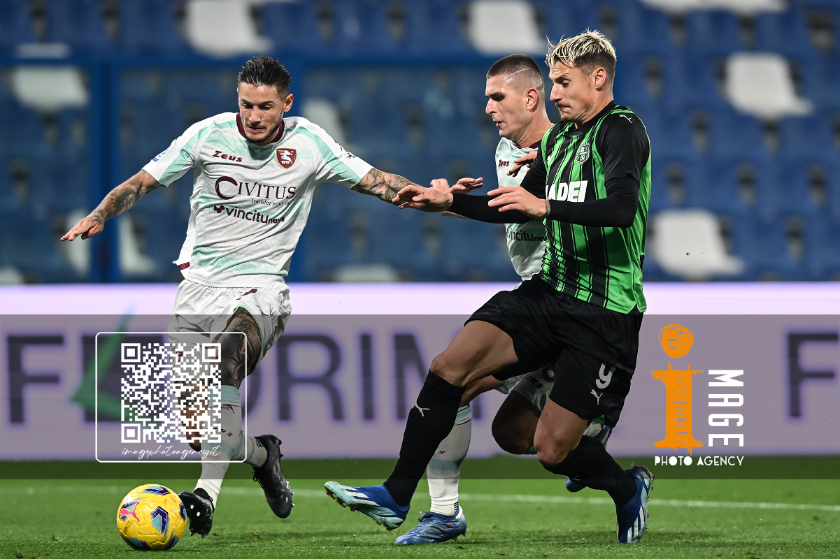 Db Reggio Emilia 10/11/2023 - campionato di calcio serie A / Sassuolo-Salernitana / foto Daniele Buffa/Image Sport nella foto: Andrea Pinamonti-Lorenzo Pirola-Pasquale Mazzocchi