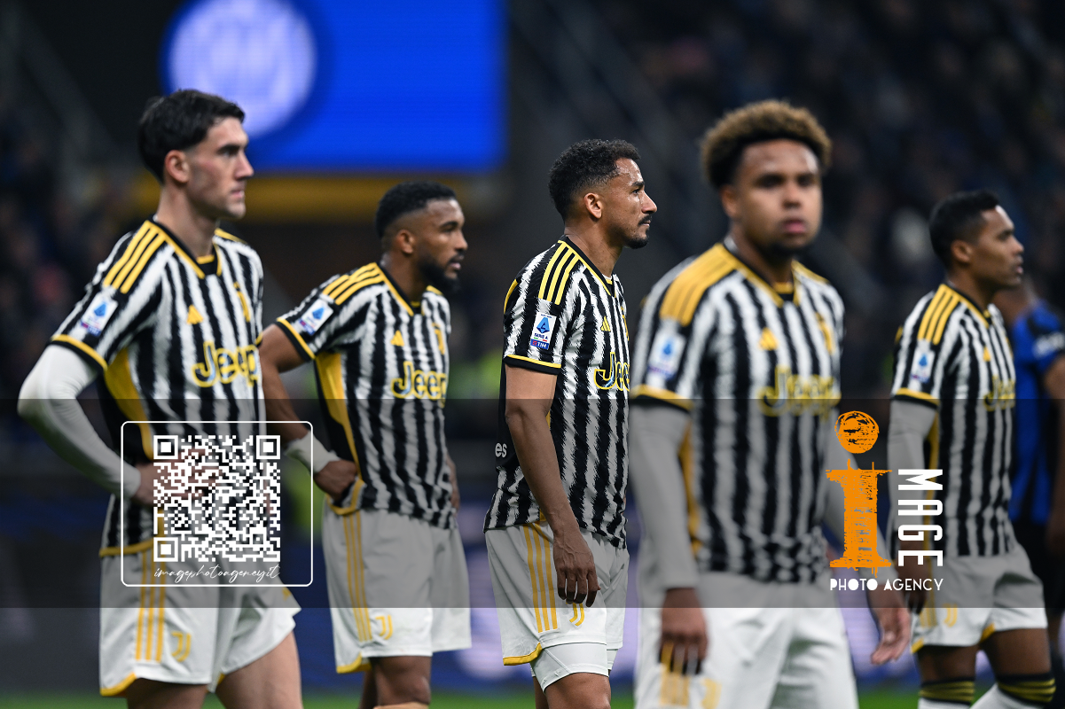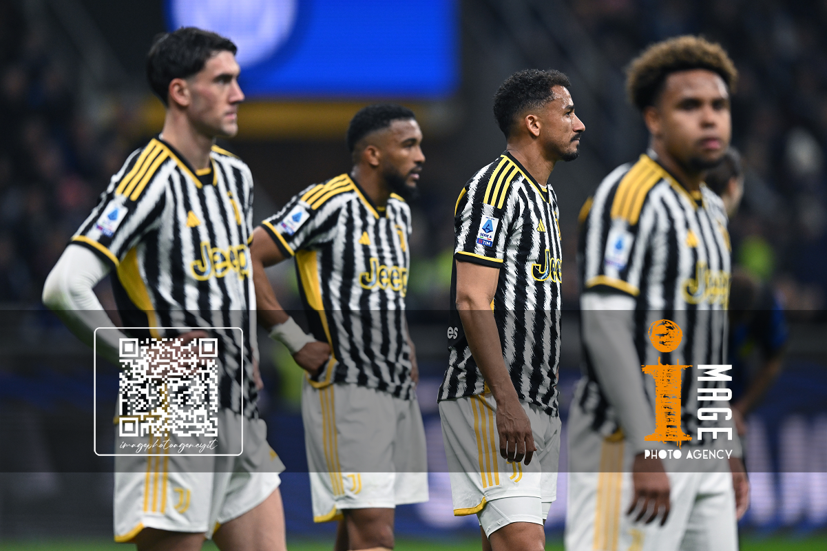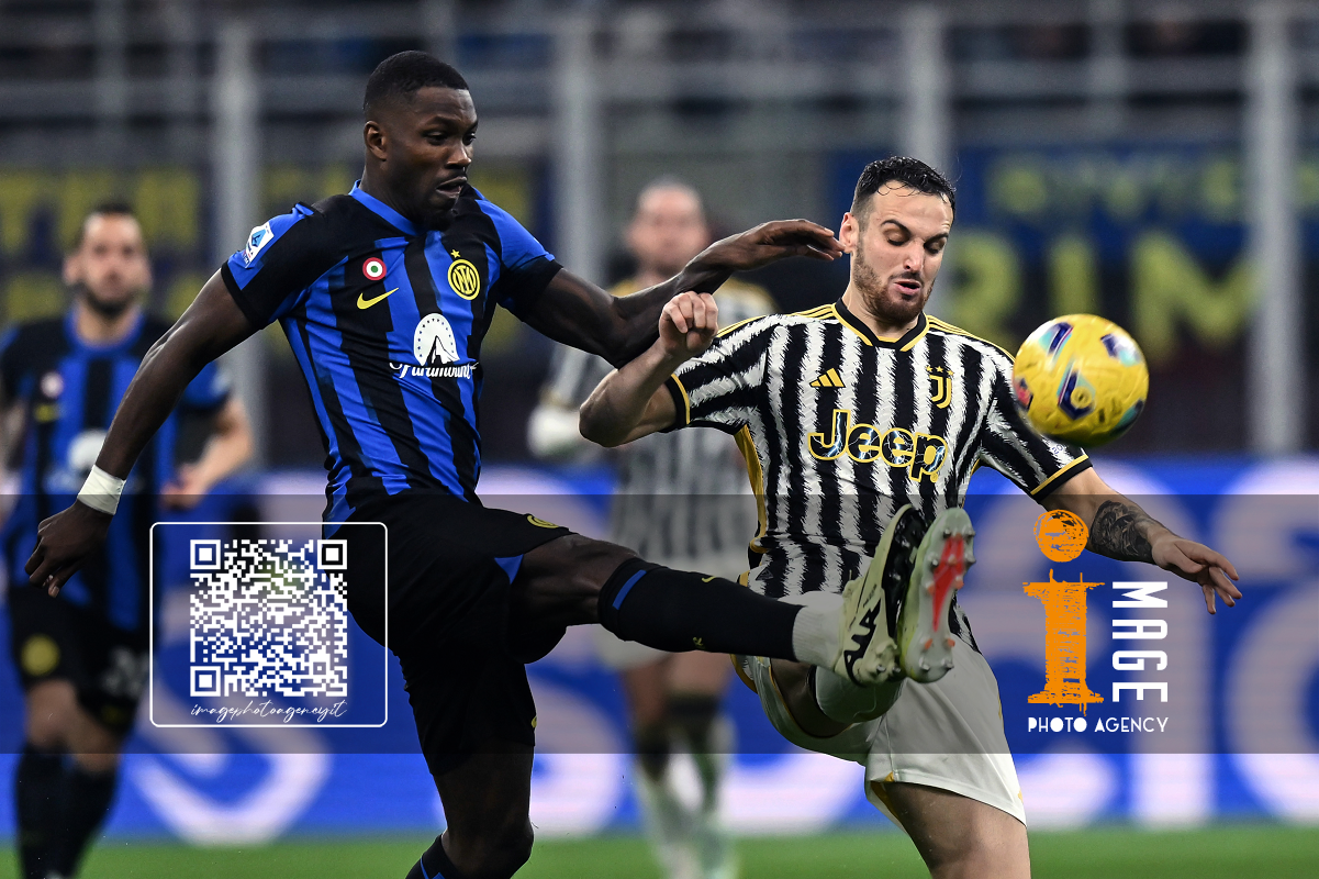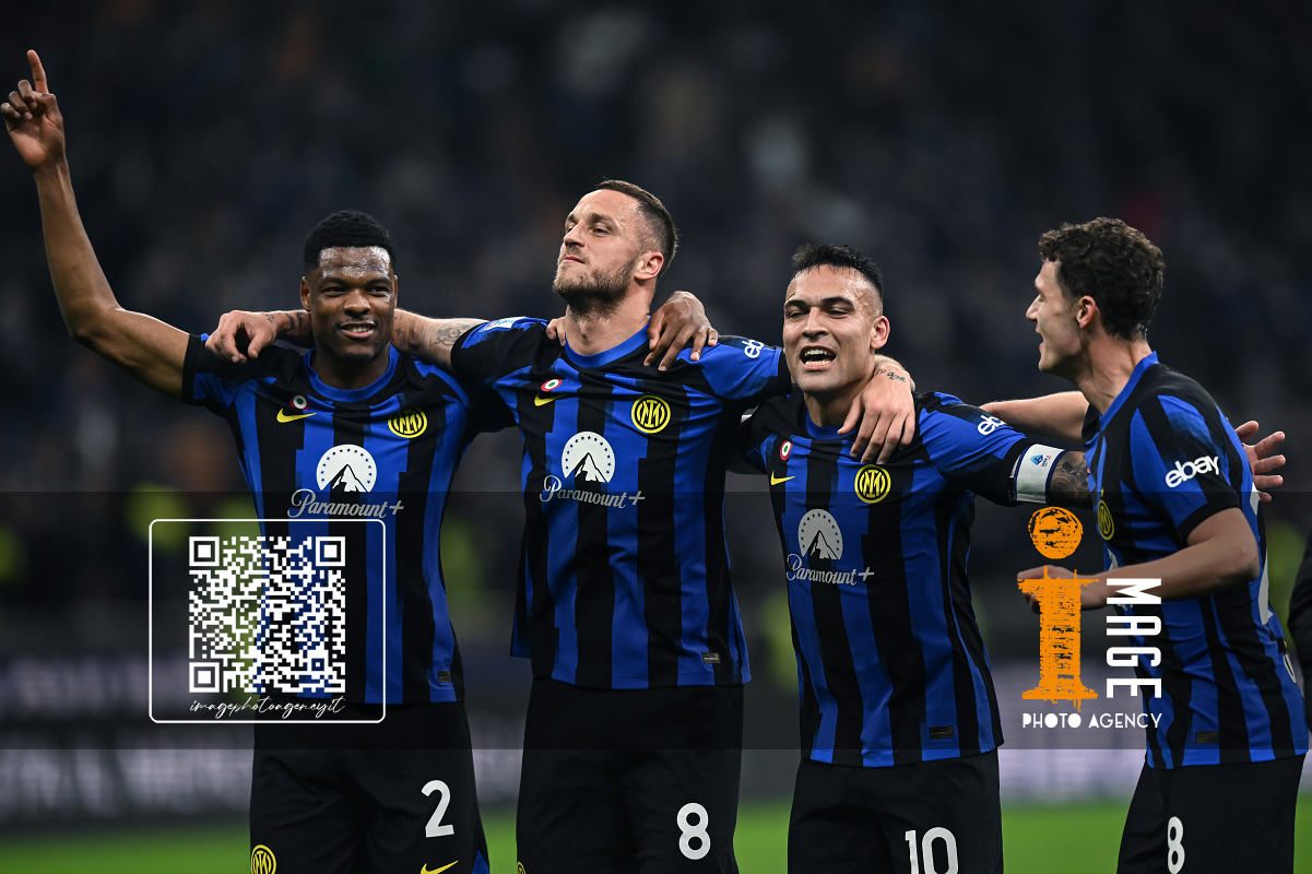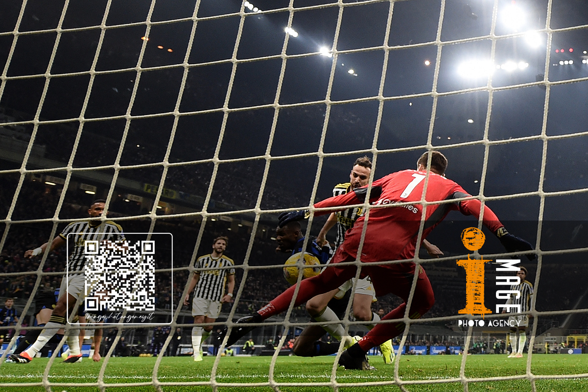 Db Milano 04/02/2024 - campionato di calcio serie A / Inter-Juventus / foto Daniele Buffa/Image Sport nella foto: Lautaro Martinez-Marko Arnautovic-Denzel Justus Dumfries-Benjamin Pavard