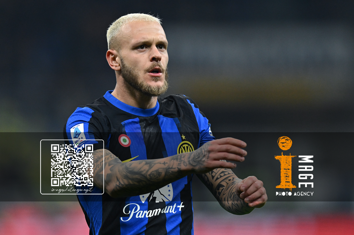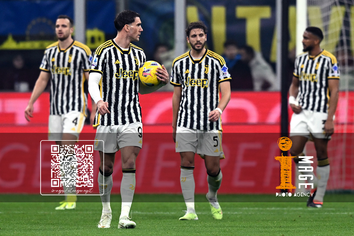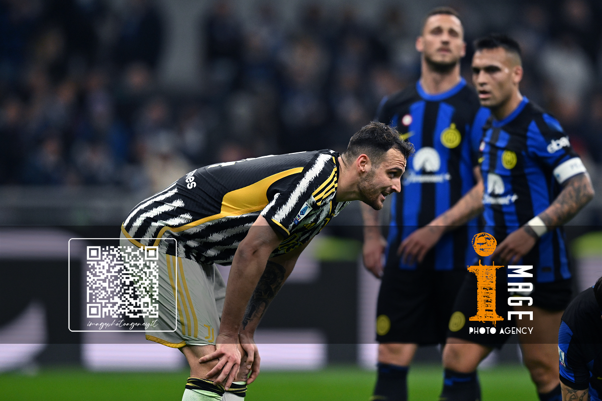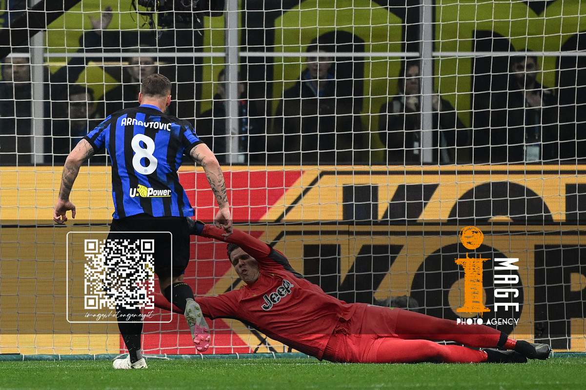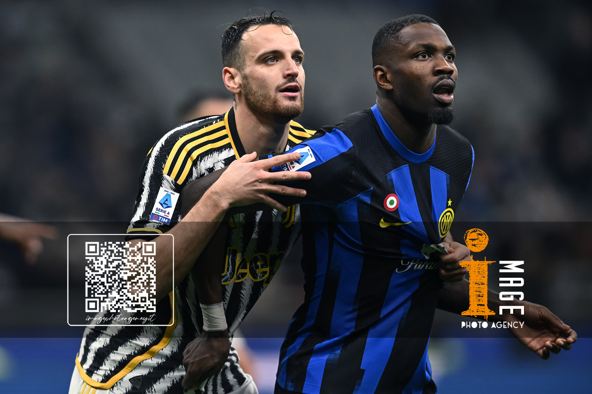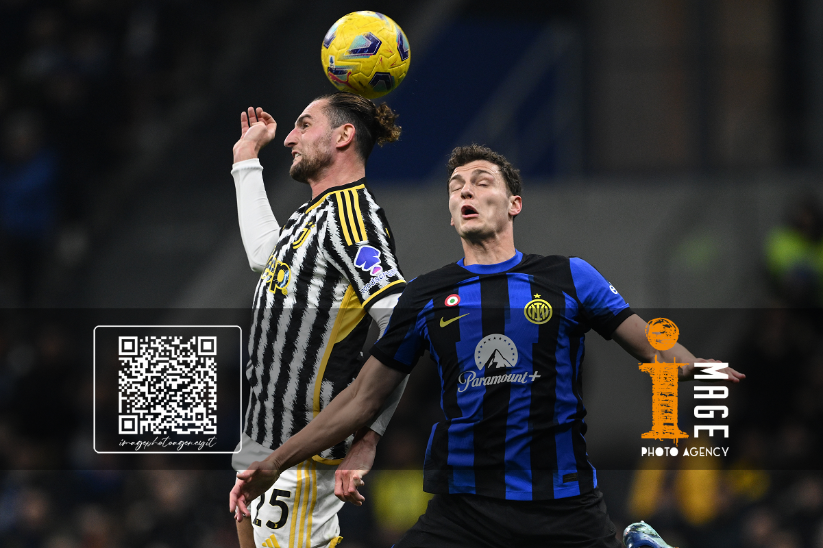Db Milano 04/02/2024 - campionato di calcio serie A / Inter-Juventus / foto Daniele Buffa/Image Sport nella foto: Lautaro Martinez-Marko Arnautovic-Denzel Justus Dumfries-Benjamin Pavard