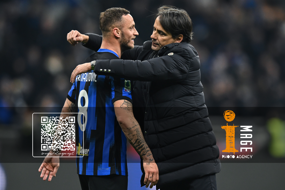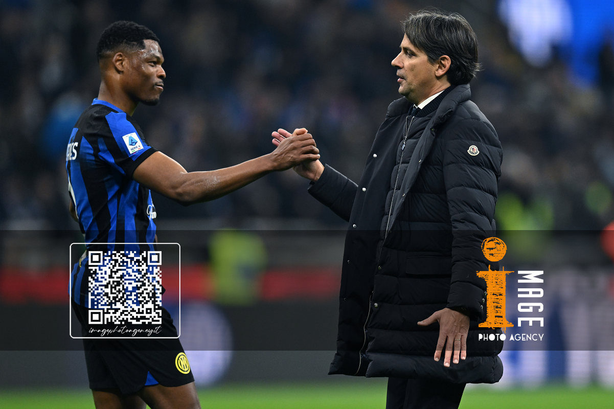Db Milano 04/02/2024 - campionato di calcio serie A / Inter-Juventus / foto Daniele Buffa/Image Sport nella foto: Simone Inzaghi-Denzel Justus Dumfries