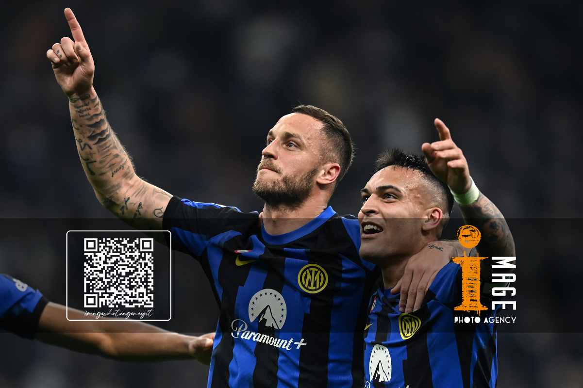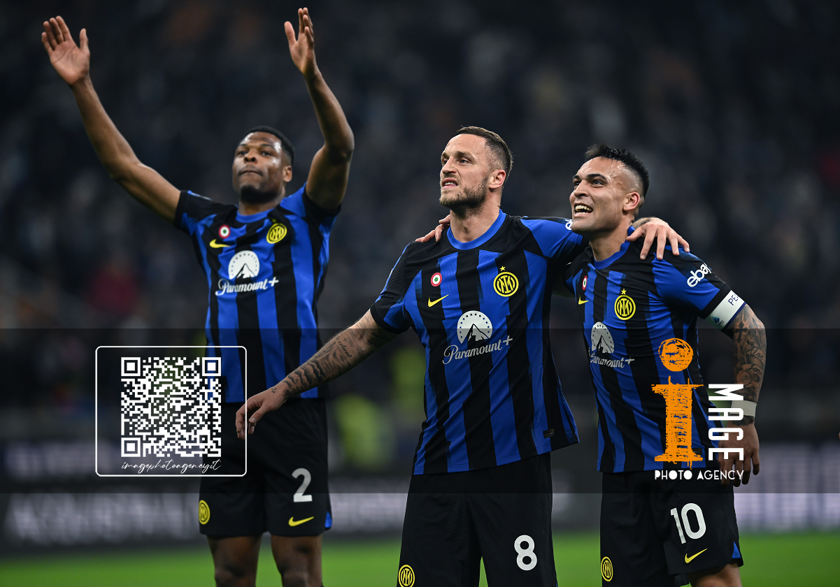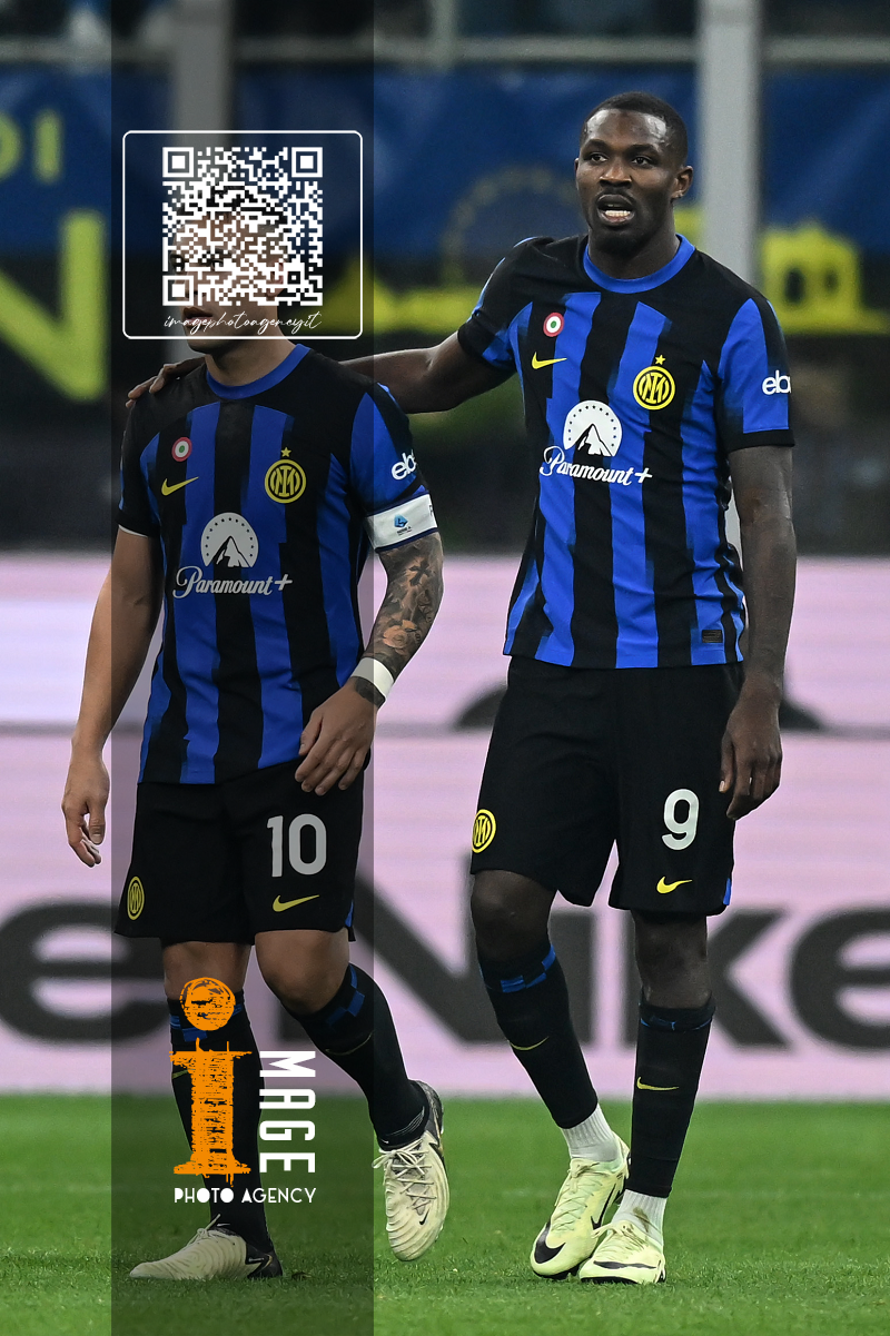 Db Milano 04/02/2024 - campionato di calcio serie A / Inter-Juventus / foto Daniele Buffa/Image Sport nella foto: Lautaro Martinez-Marko Arnautovic-Denzel Justus Dumfries