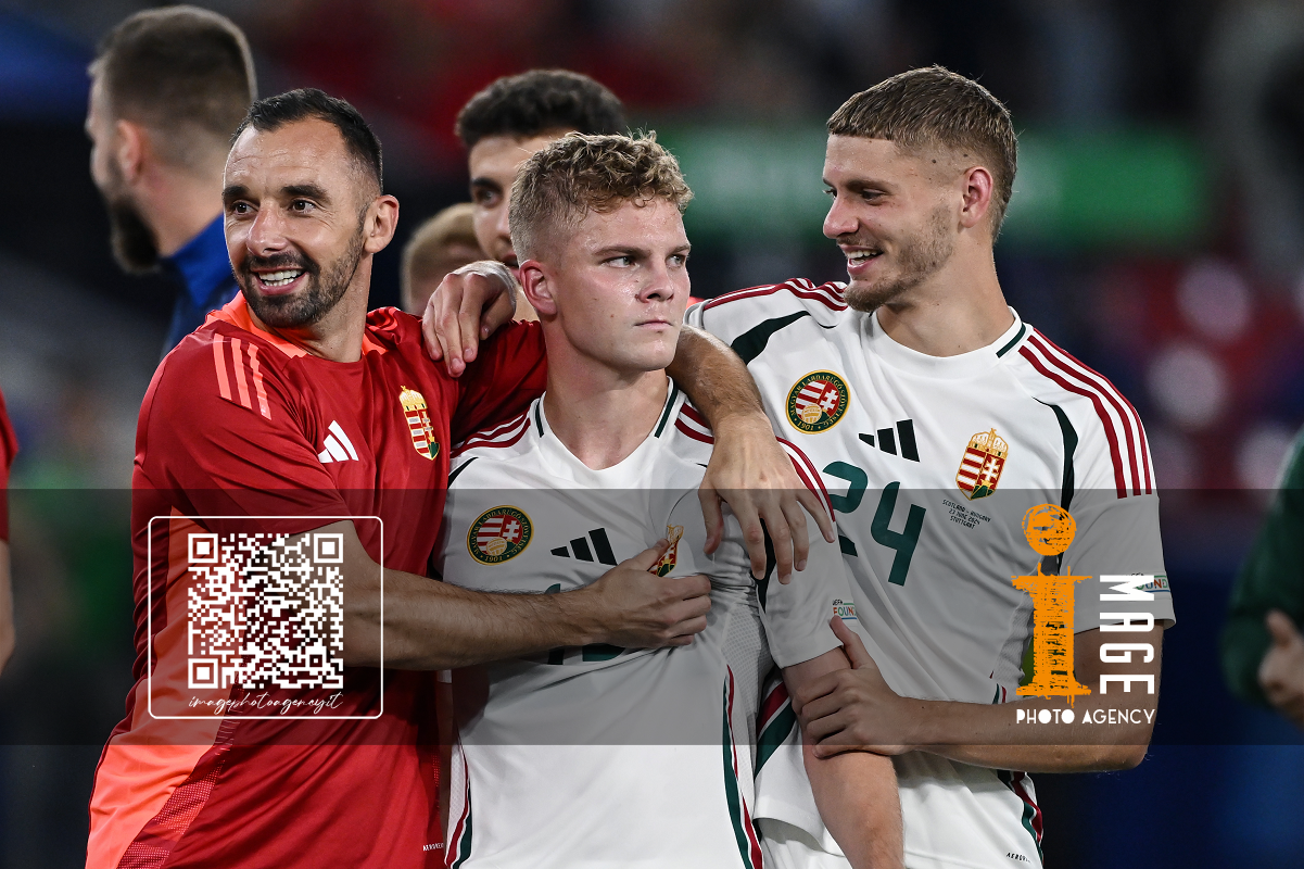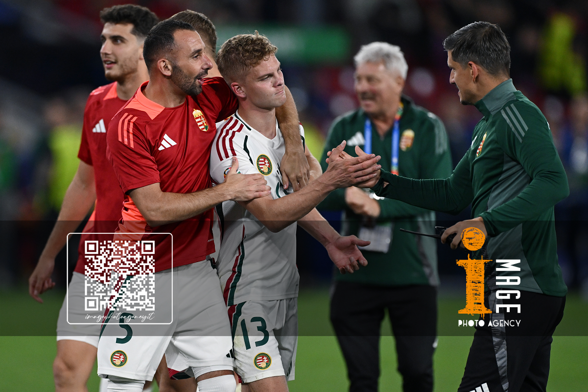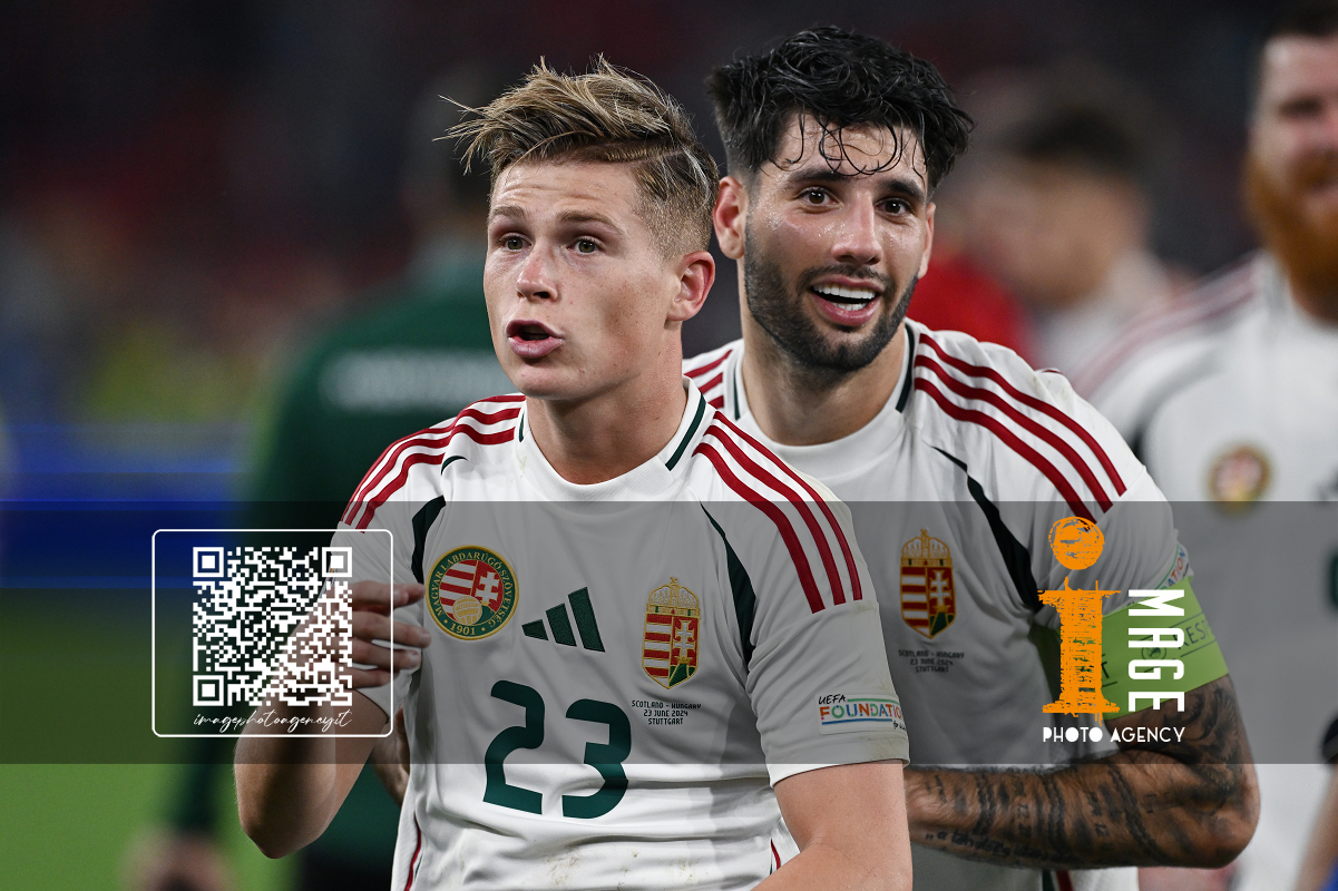Db Stoccarda (Germania) 23/06/2024 - Euro 2024 / Scozia-Ungheria / foto Daniele Buffa/Image Sport nella foto: Andras Schafer-Attila Fiola-Marton Dardai