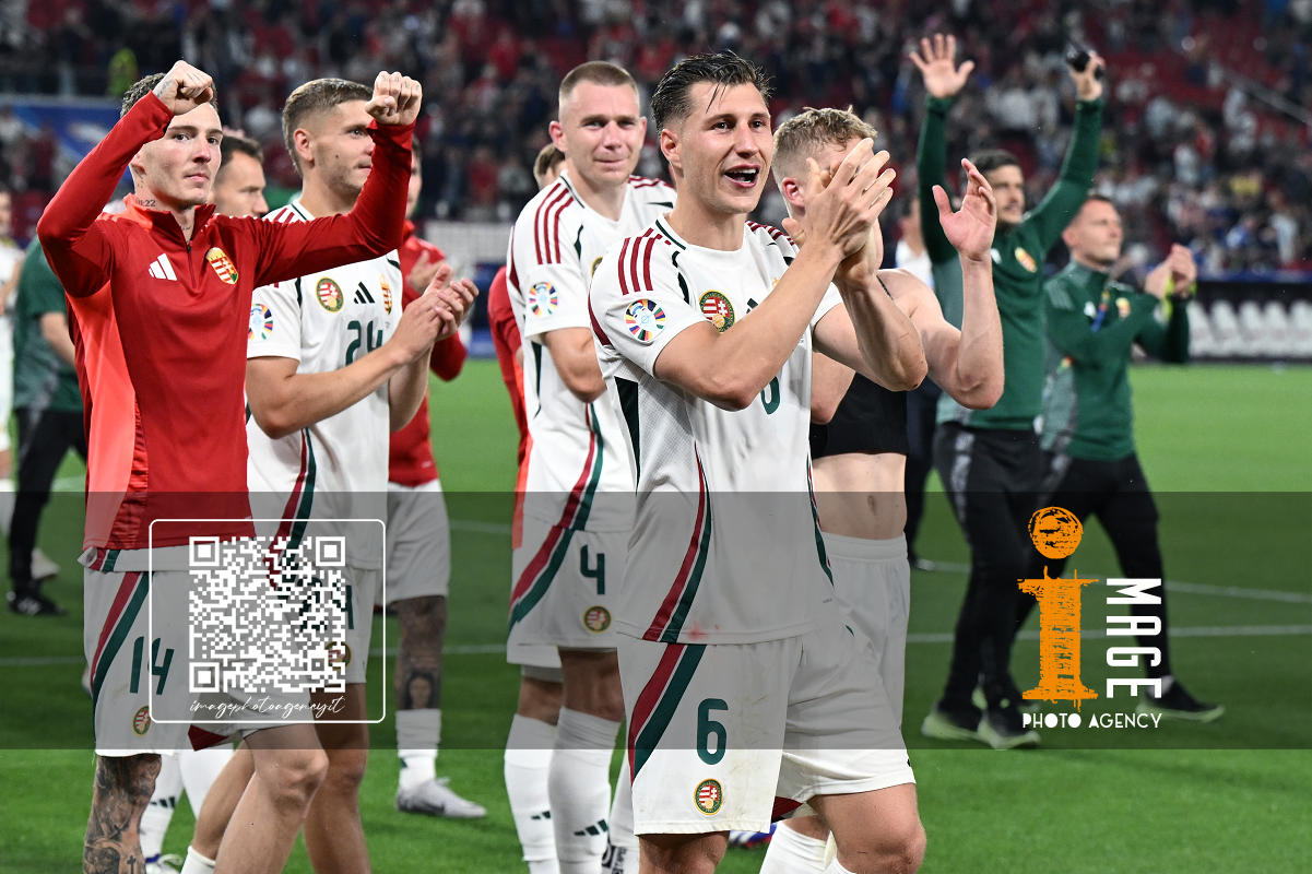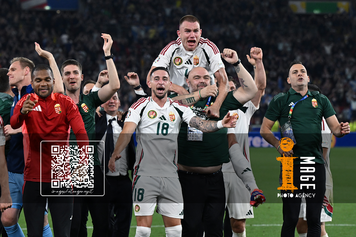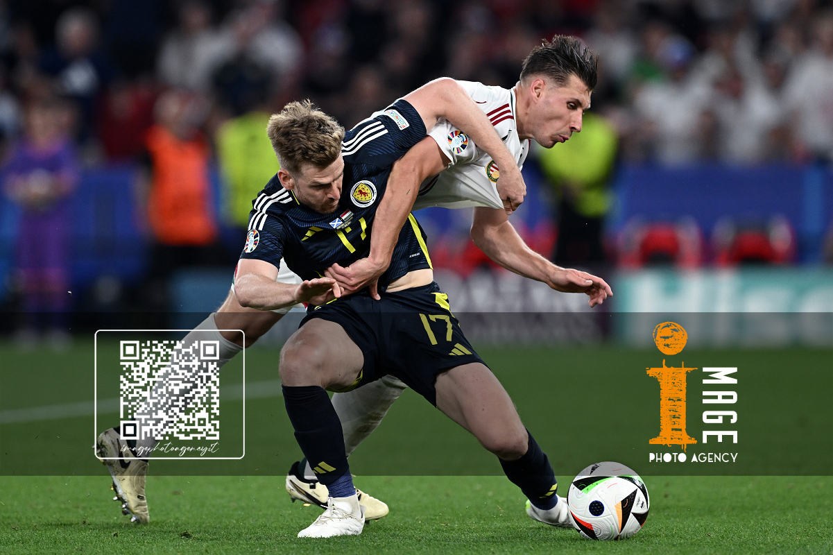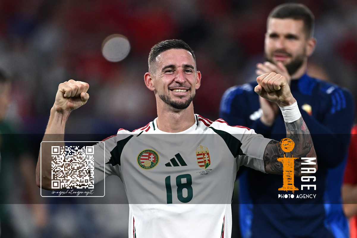 Db Stoccarda (Germania) 23/06/2024 - Euro 2024 / Scozia-Ungheria / foto Daniele Buffa/Image Sport nella foto: Andras Schafer-Attila Fiola-Marton Dardai