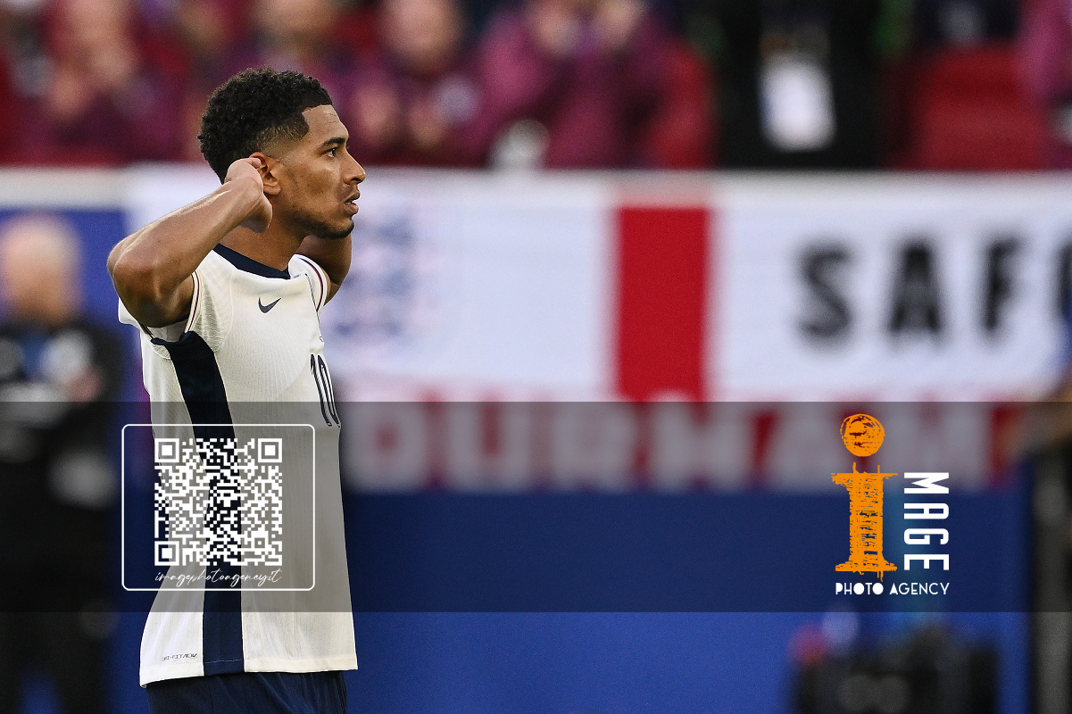 Mg Dusseldorf (Germania) 06/07/2024 - Euro 2024 / Inghilterra-Svizzera / foto Matteo Gribaudi/Image Sport nella foto: Jude Bellingham-John Stones-Harry Kane