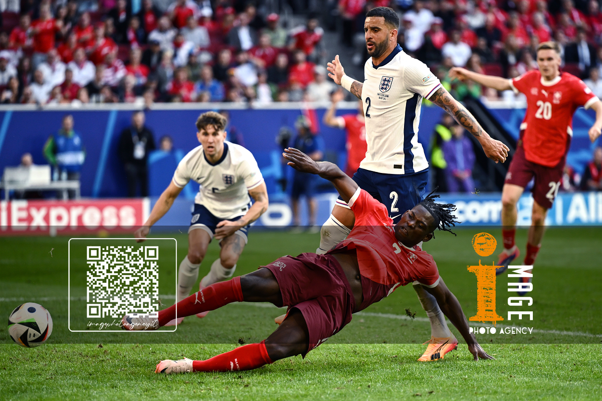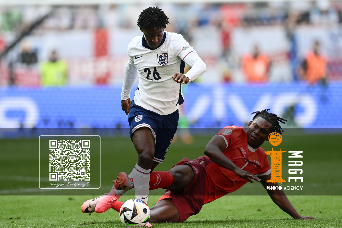 Mg Dusseldorf (Germania) 06/07/2024 - Euro 2024 / Inghilterra-Svizzera / foto Matteo Gribaudi/Image Sport nella foto: Kobbie Mainoo-Breel Donald Embolo