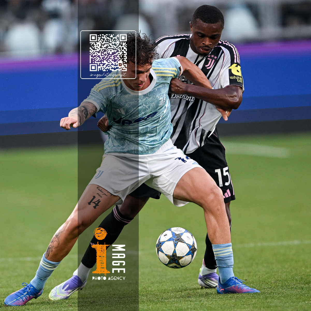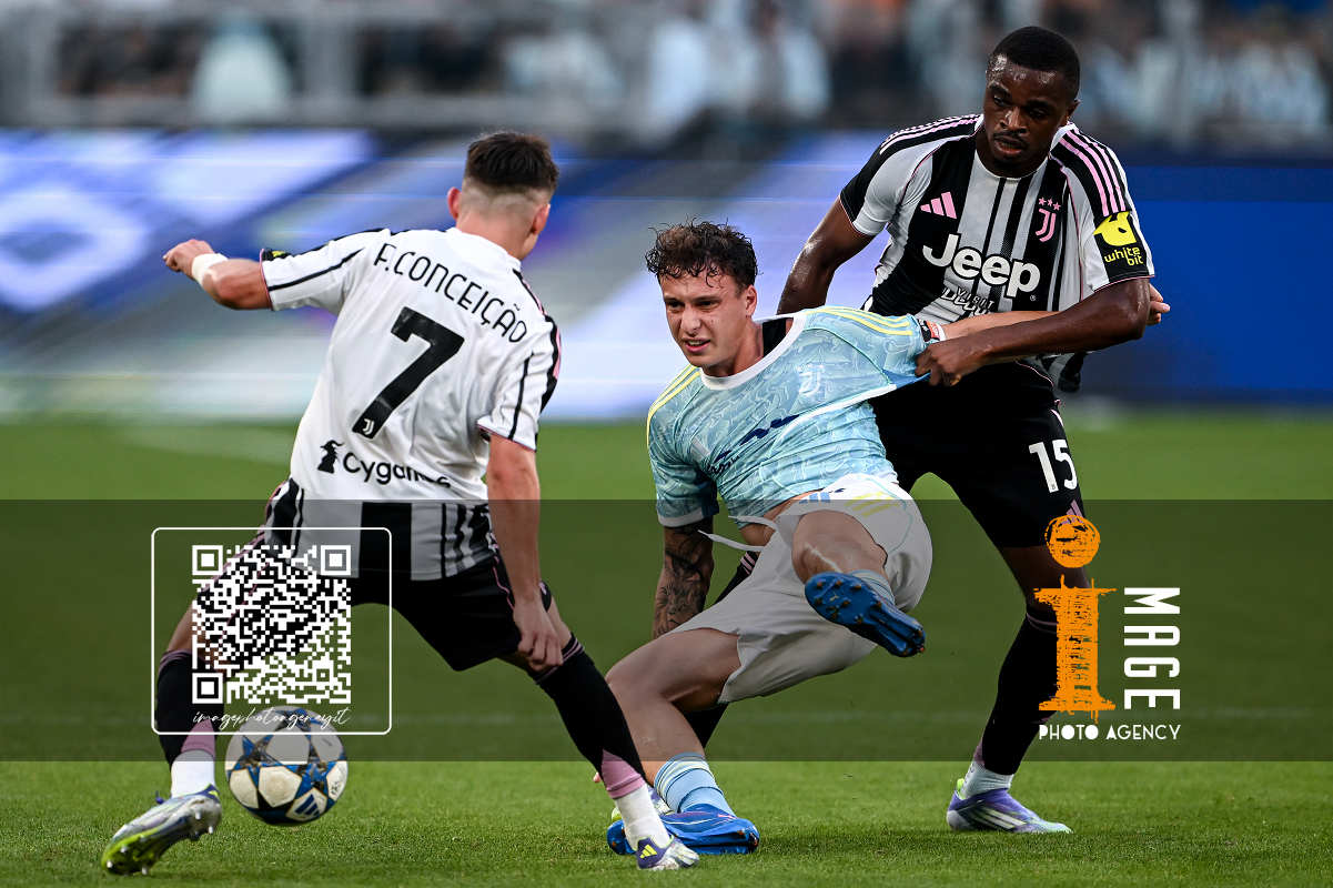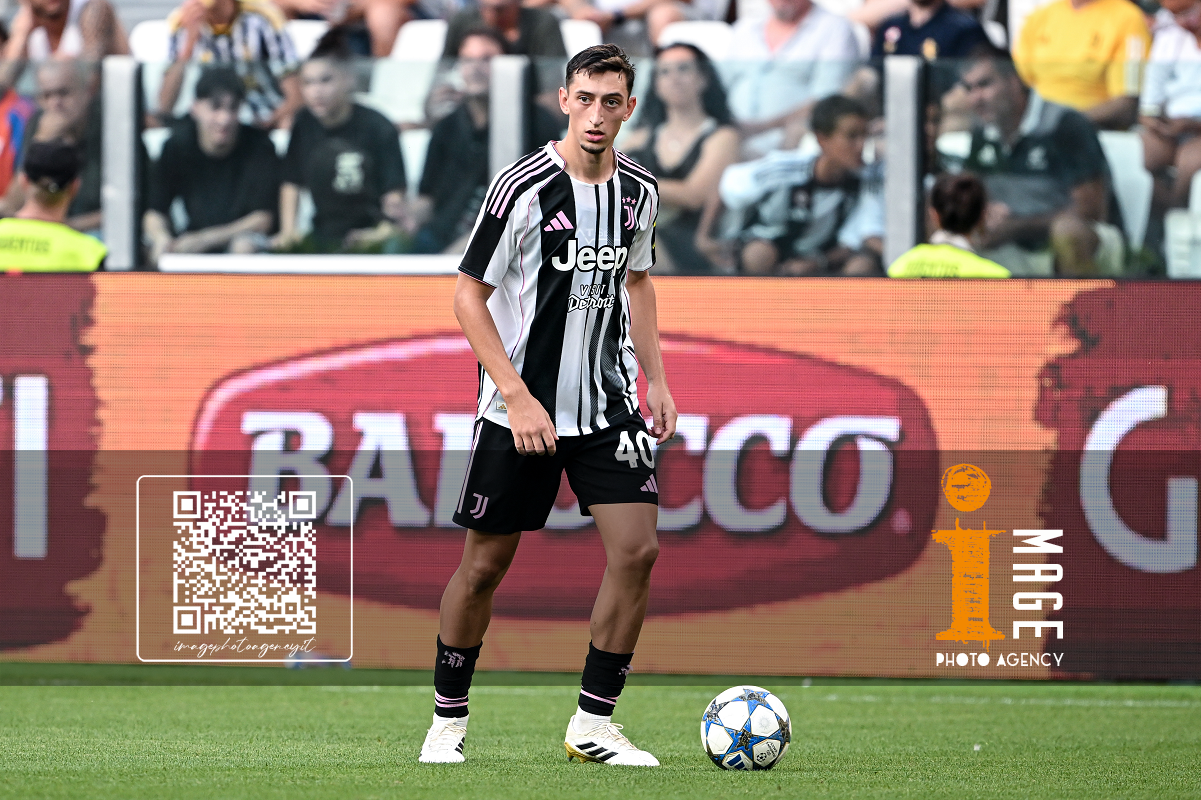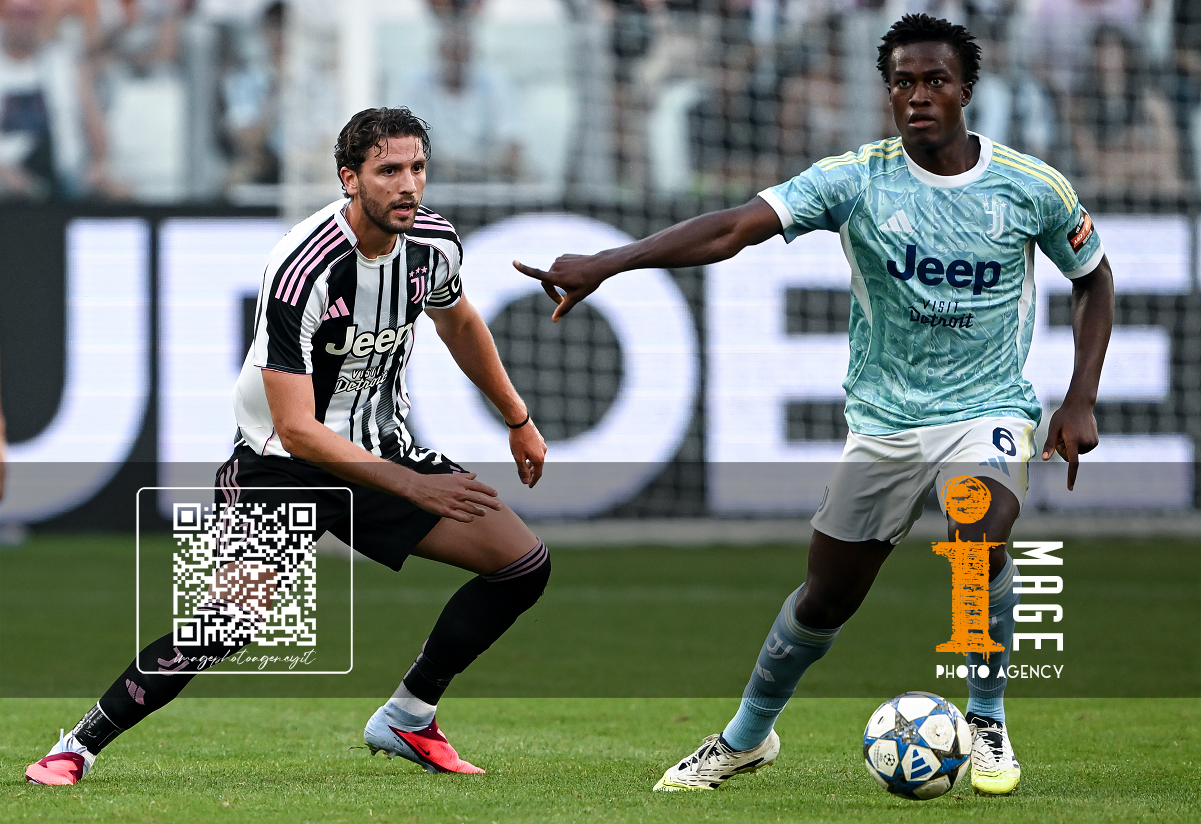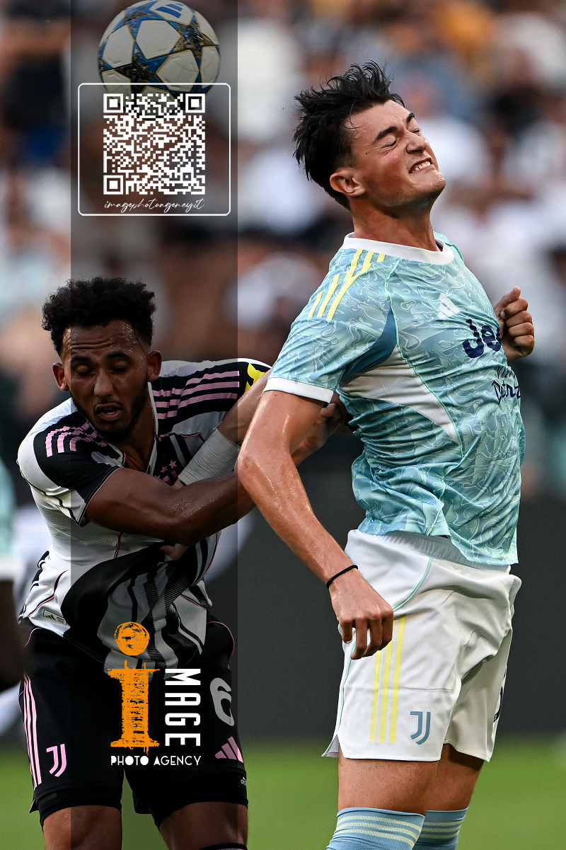 Cm Torino 13/08/2025 - amichevole / Juventus-Juventus Next Gen / foto Cristiano Mazzi/Image Sport nella foto: Pierre Kalulu-Gianmarco Di Biase-Francisco Conceicao