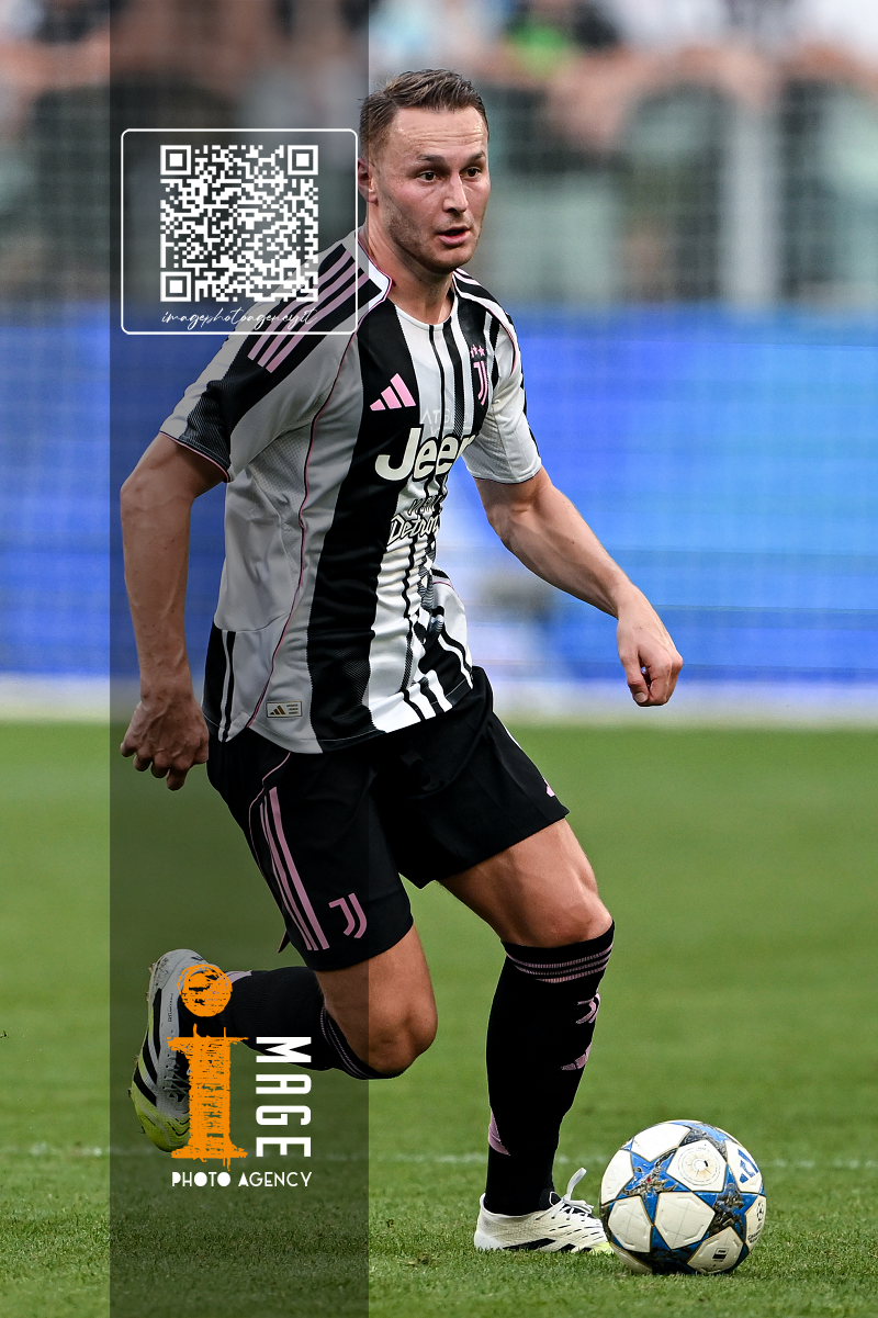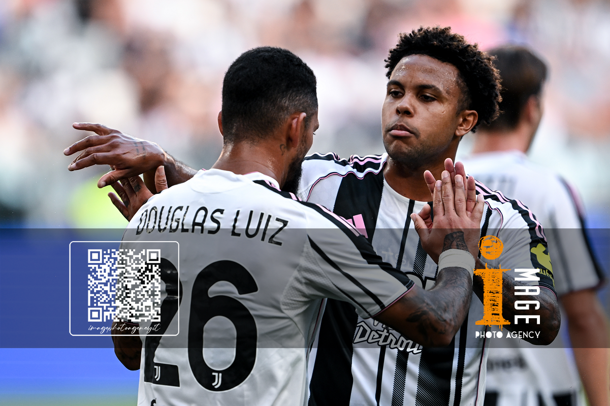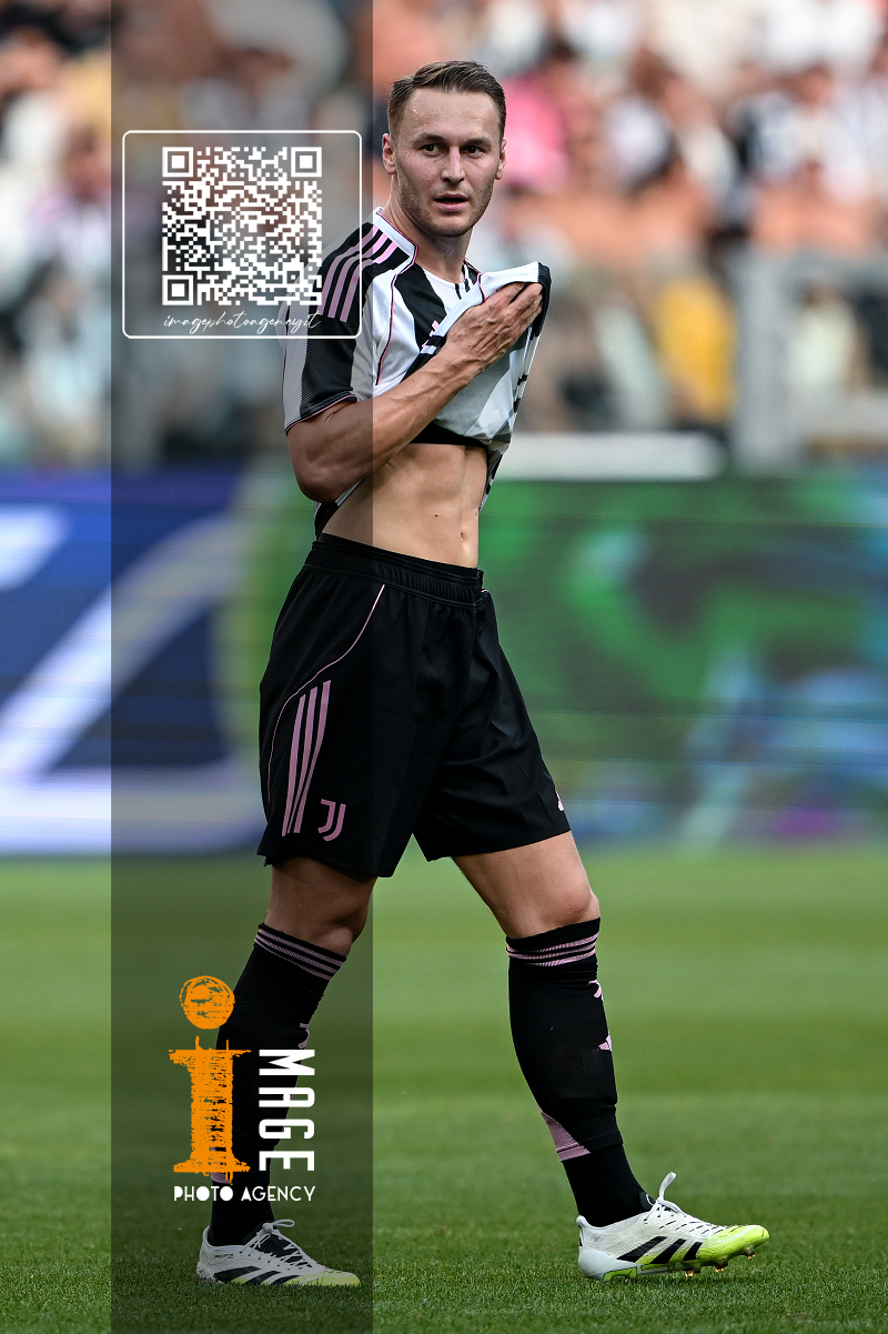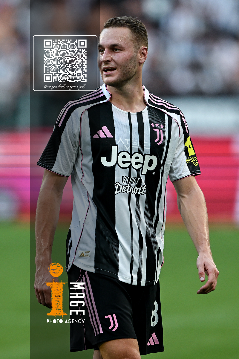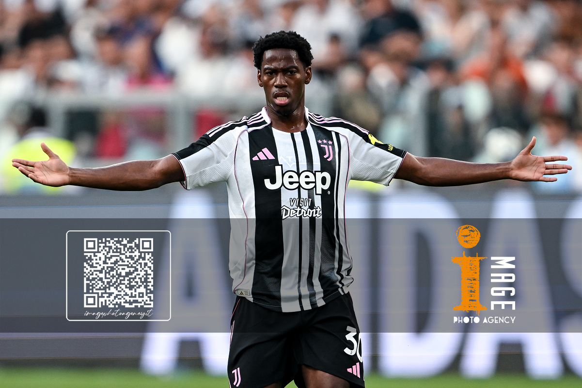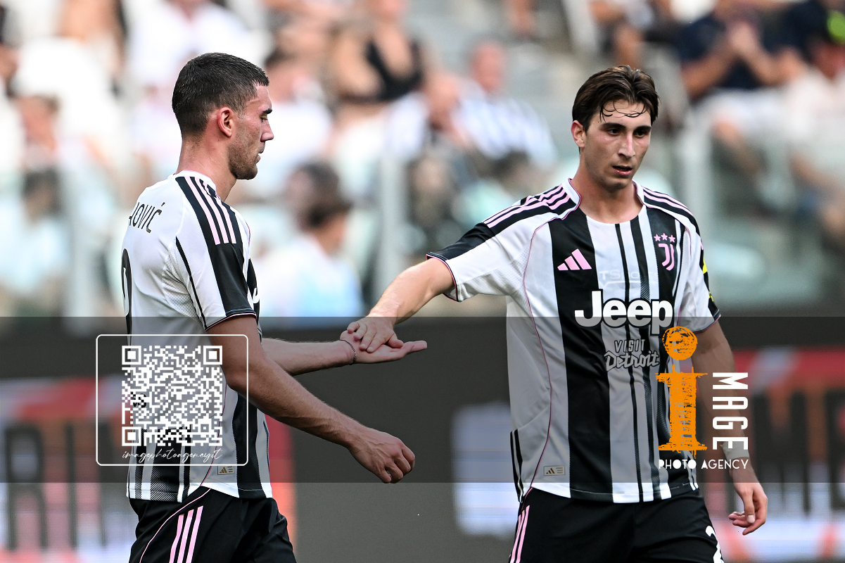 Cm Torino 13/08/2025 - amichevole / Juventus-Juventus Next Gen / foto Cristiano Mazzi/Image Sport nella foto: Pierre Kalulu-Gianmarco Di Biase-Francisco Conceicao