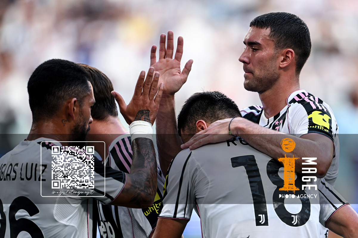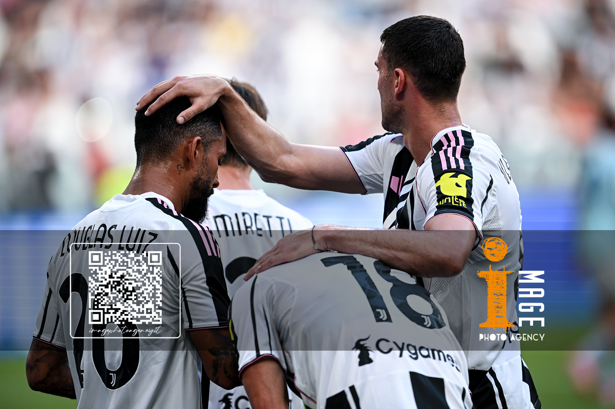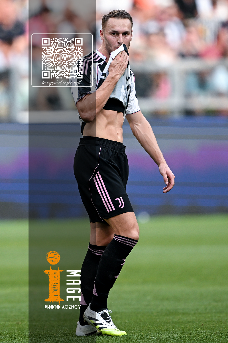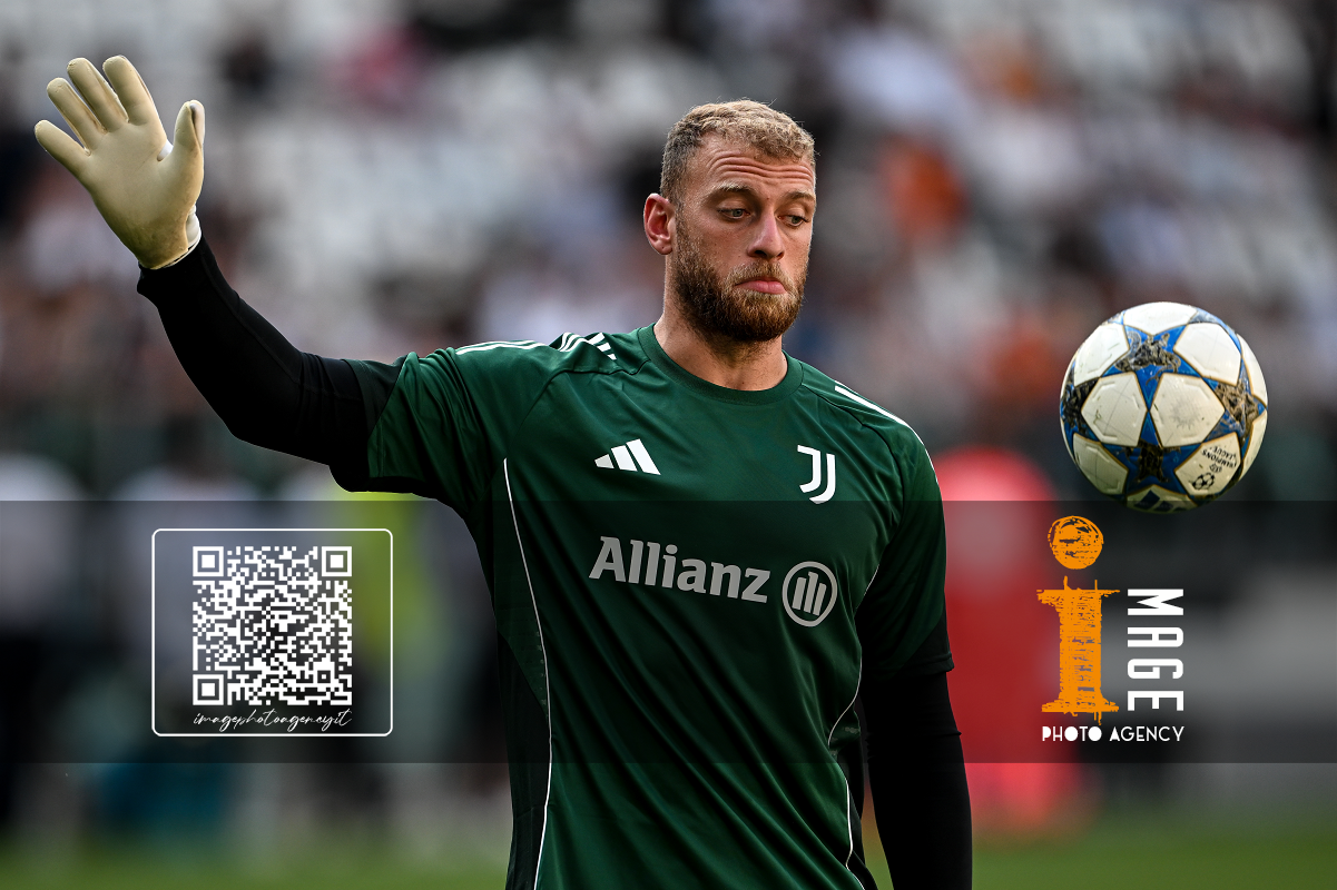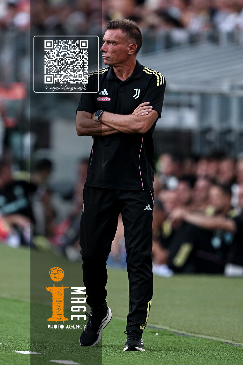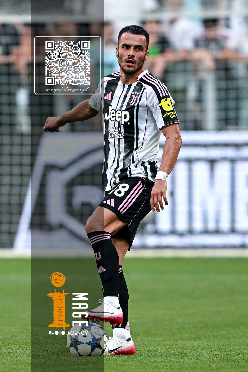 Cm Torino 13/08/2025 - amichevole / Juventus-Juventus Next Gen / foto Cristiano Mazzi/Image Sport nella foto: Pierre Kalulu-Gianmarco Di Biase-Francisco Conceicao