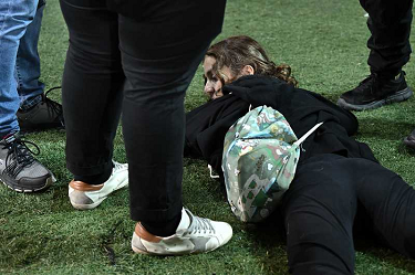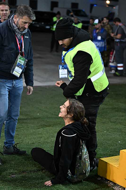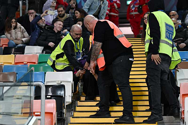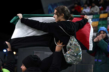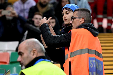 tifosi Italia con bandiera Palestina viene fermato dagli steward