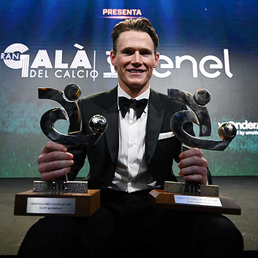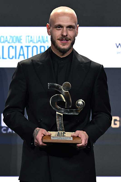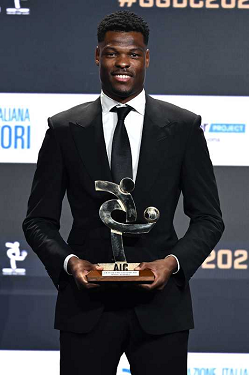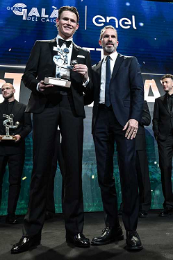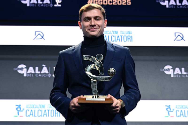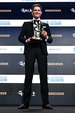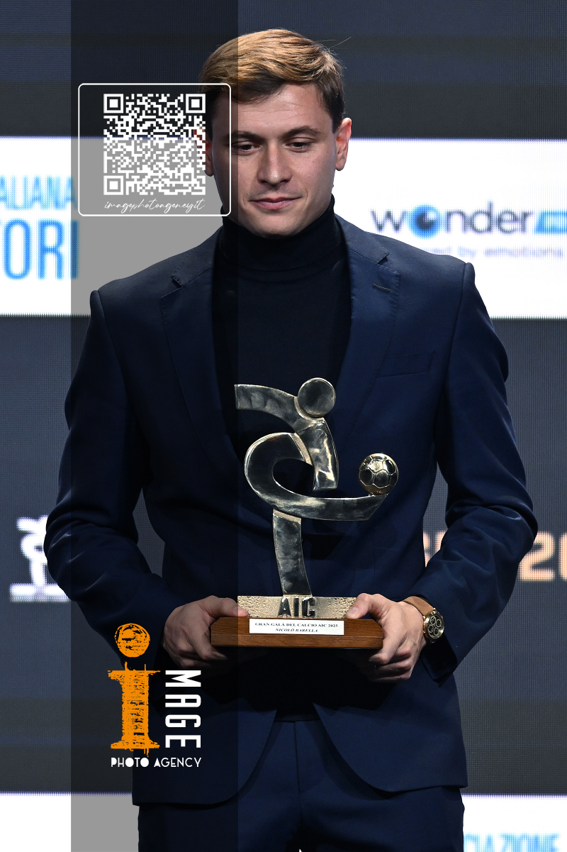 Db Milano 01/12/2025 - Gran Gala' del Calcio Aic 2025 / foto Daniele Buffa/Image Sport nella foto: Alessandro Bastoni-Federico Dimarco-Denzel Dumfries-Amir Rrahmani