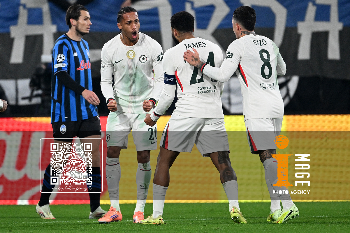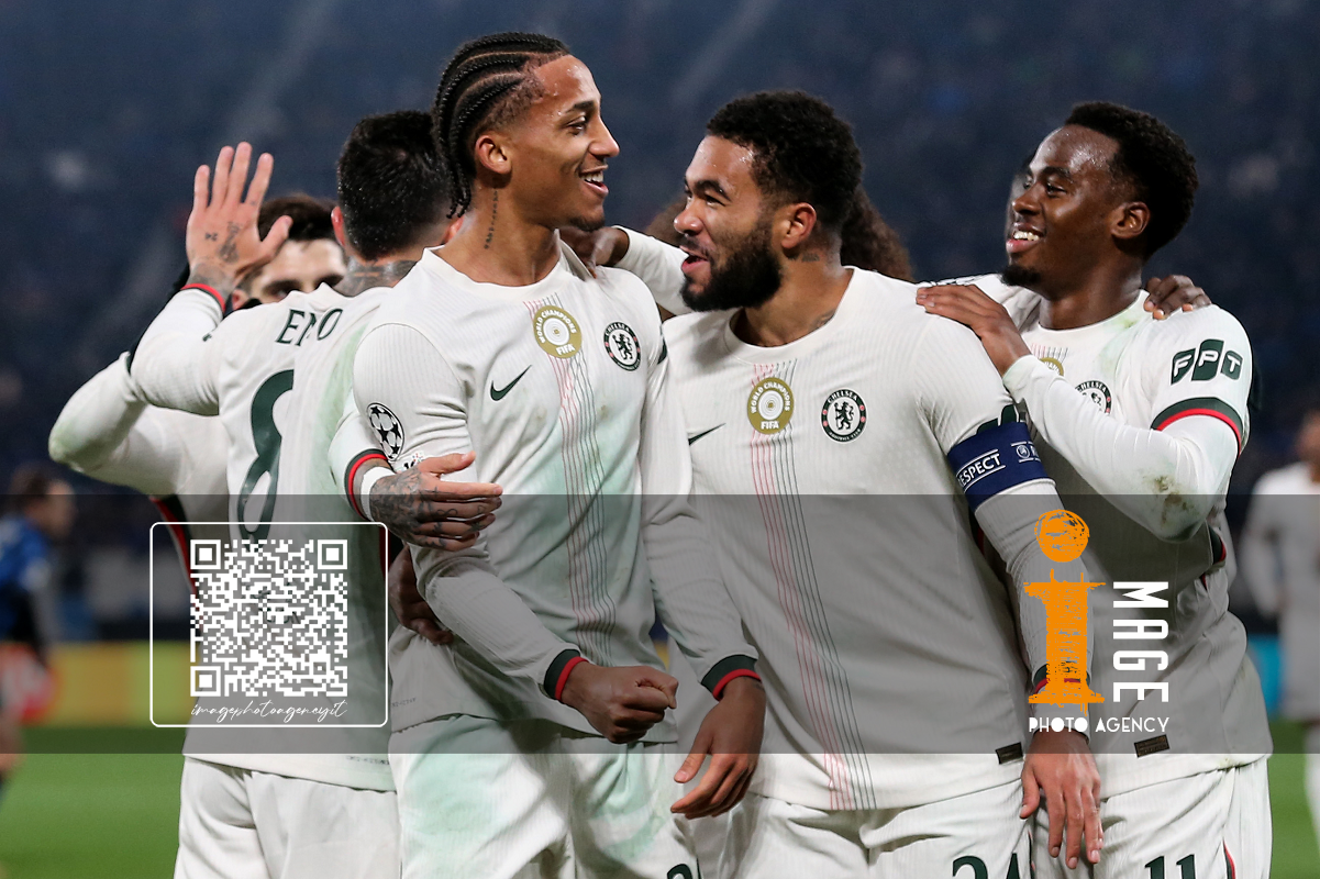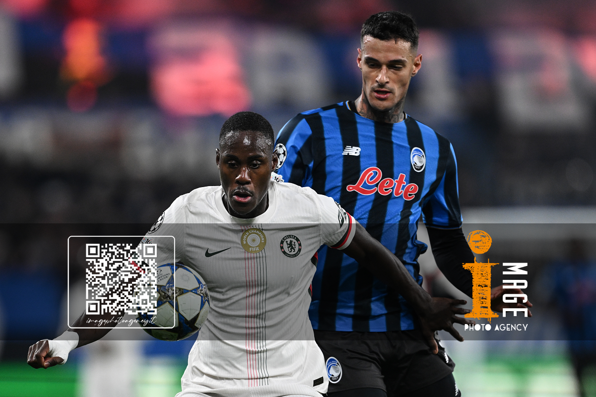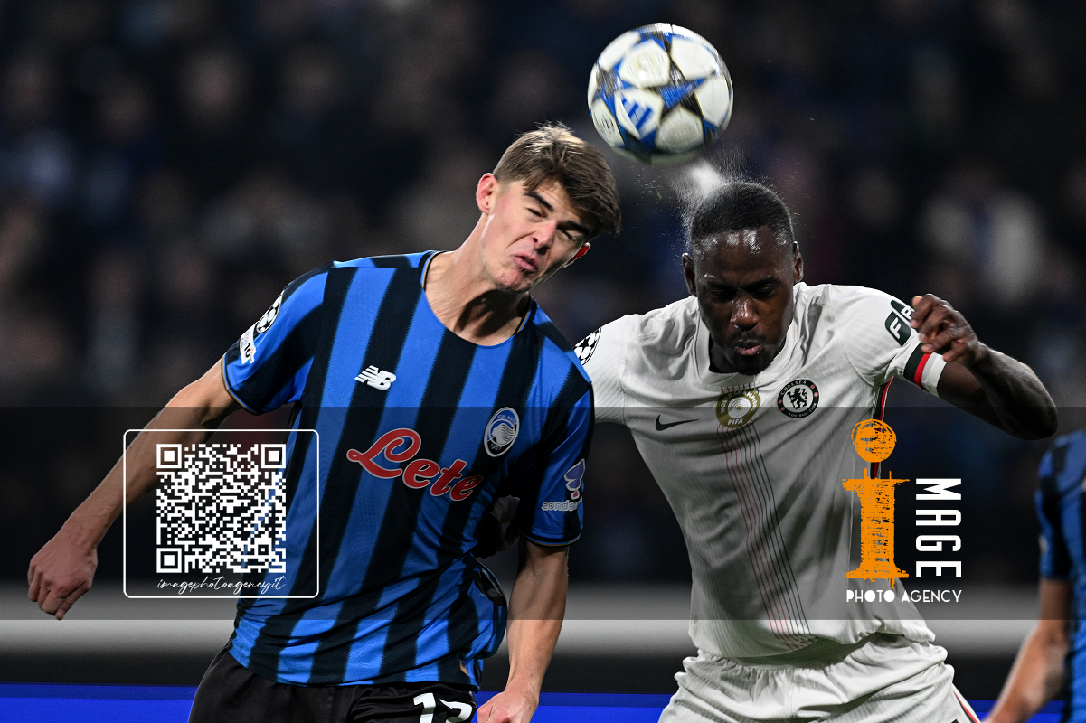 Mg Bergamo 09/12/2025 - Champions League / Atalanta-Chelsea / foto Matteo Gribaudi/Image Sport nella foto: Mario Pasalic-Marco Carnesecchi-Marten de Roon