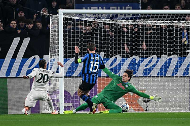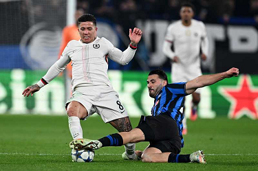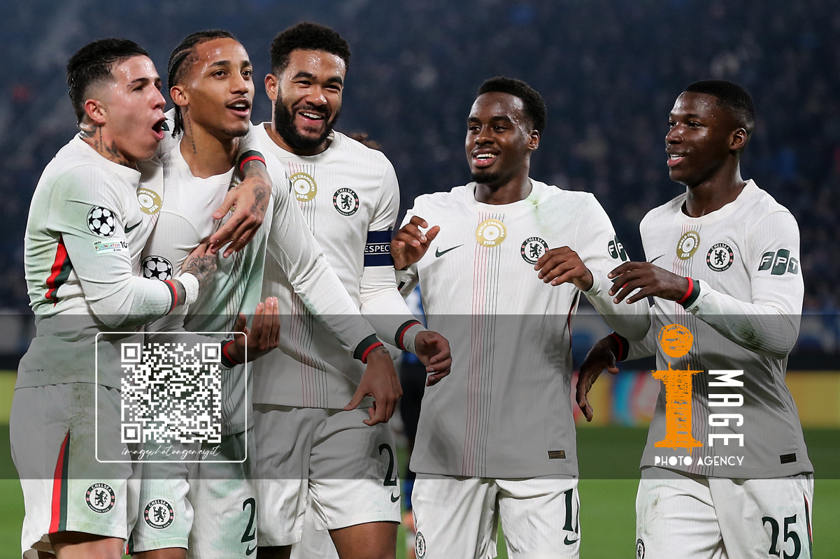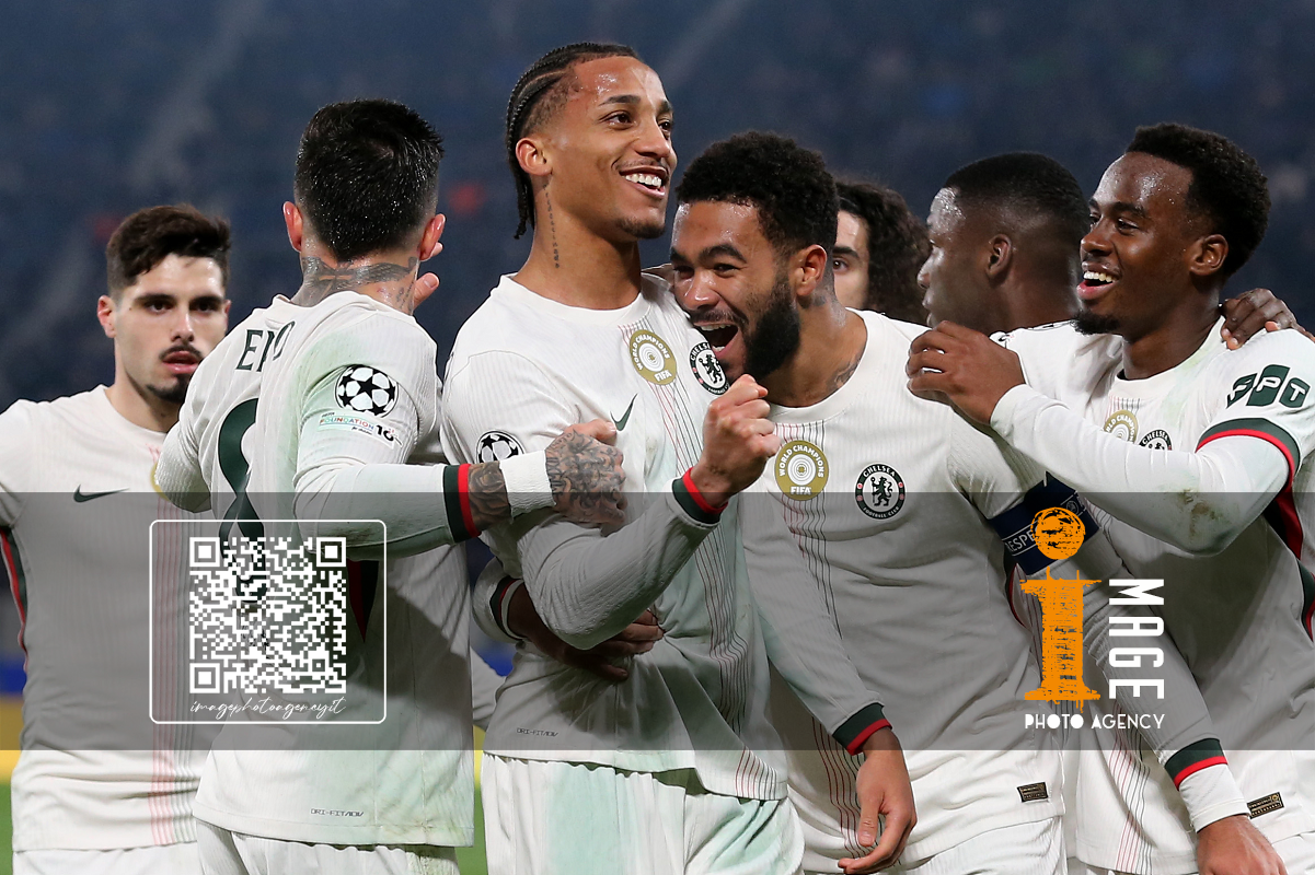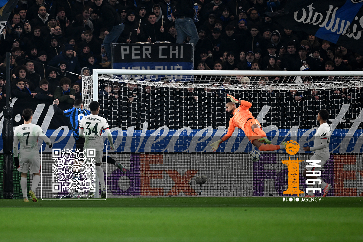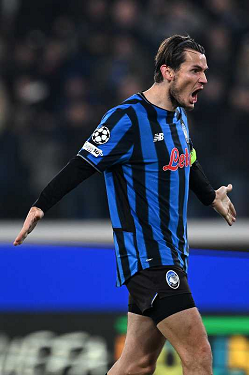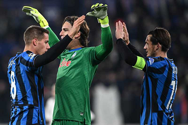 Mg Bergamo 09/12/2025 - Champions League / Atalanta-Chelsea / foto Matteo Gribaudi/Image Sport nella foto: Mario Pasalic-Marco Carnesecchi-Marten de Roon