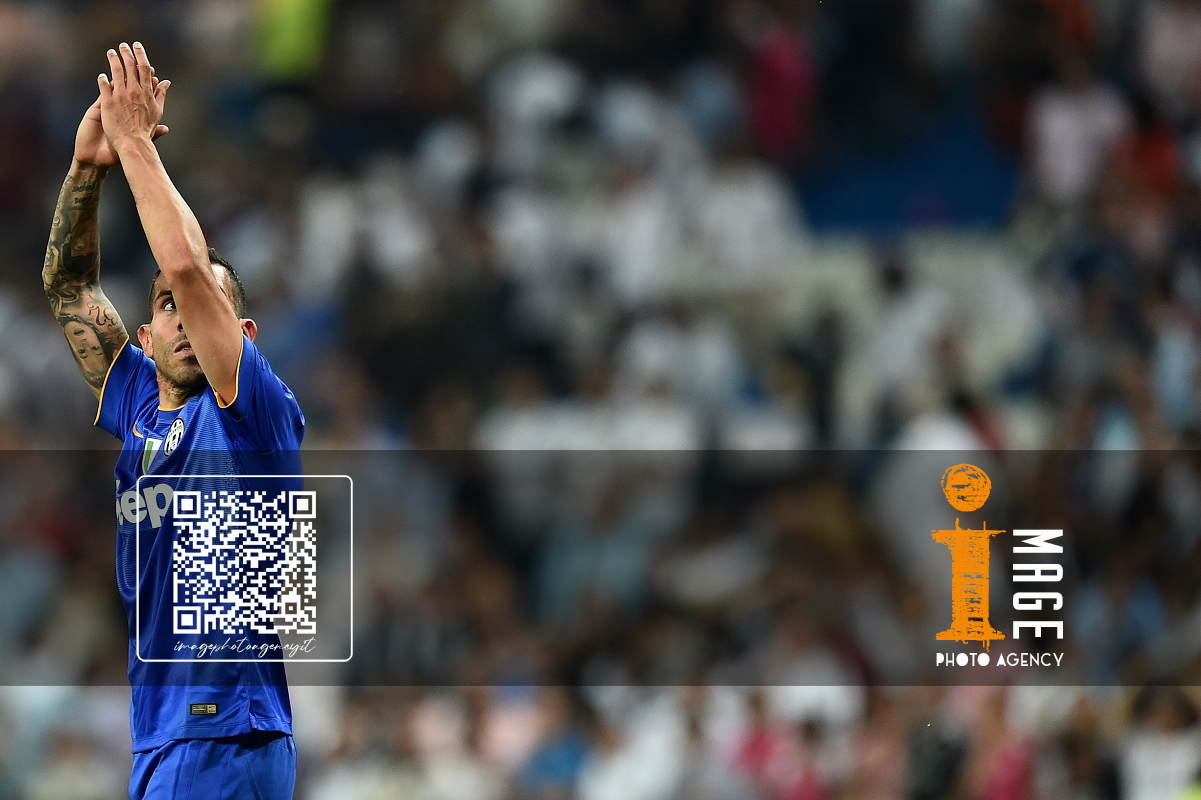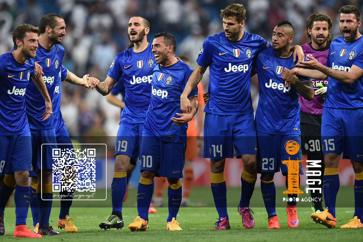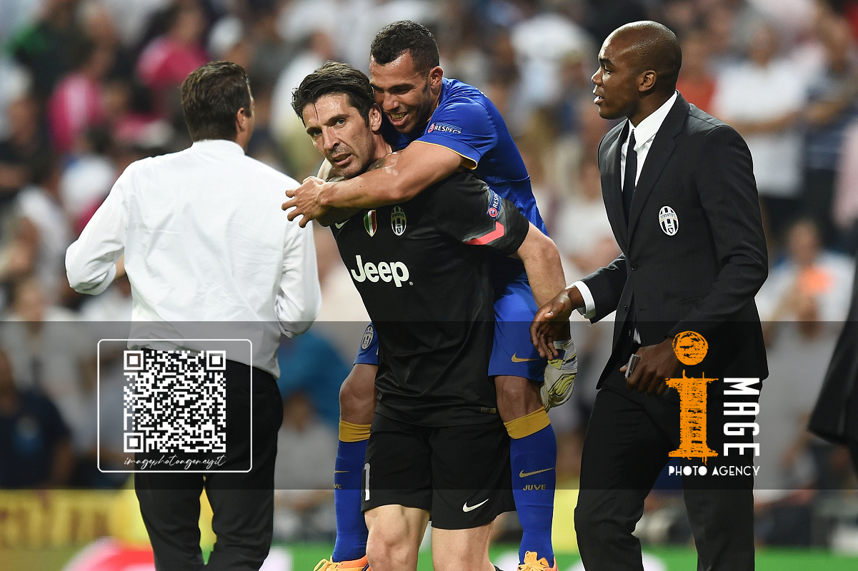 Mg Madrid (Spagna) 13/05/2015 - Champions League / Real Madrid-Juventus / foto Matteo Gribaudi/Image Sport nella foto: esultanza fine gara Gianluigi Buffon-Carlos Tevez