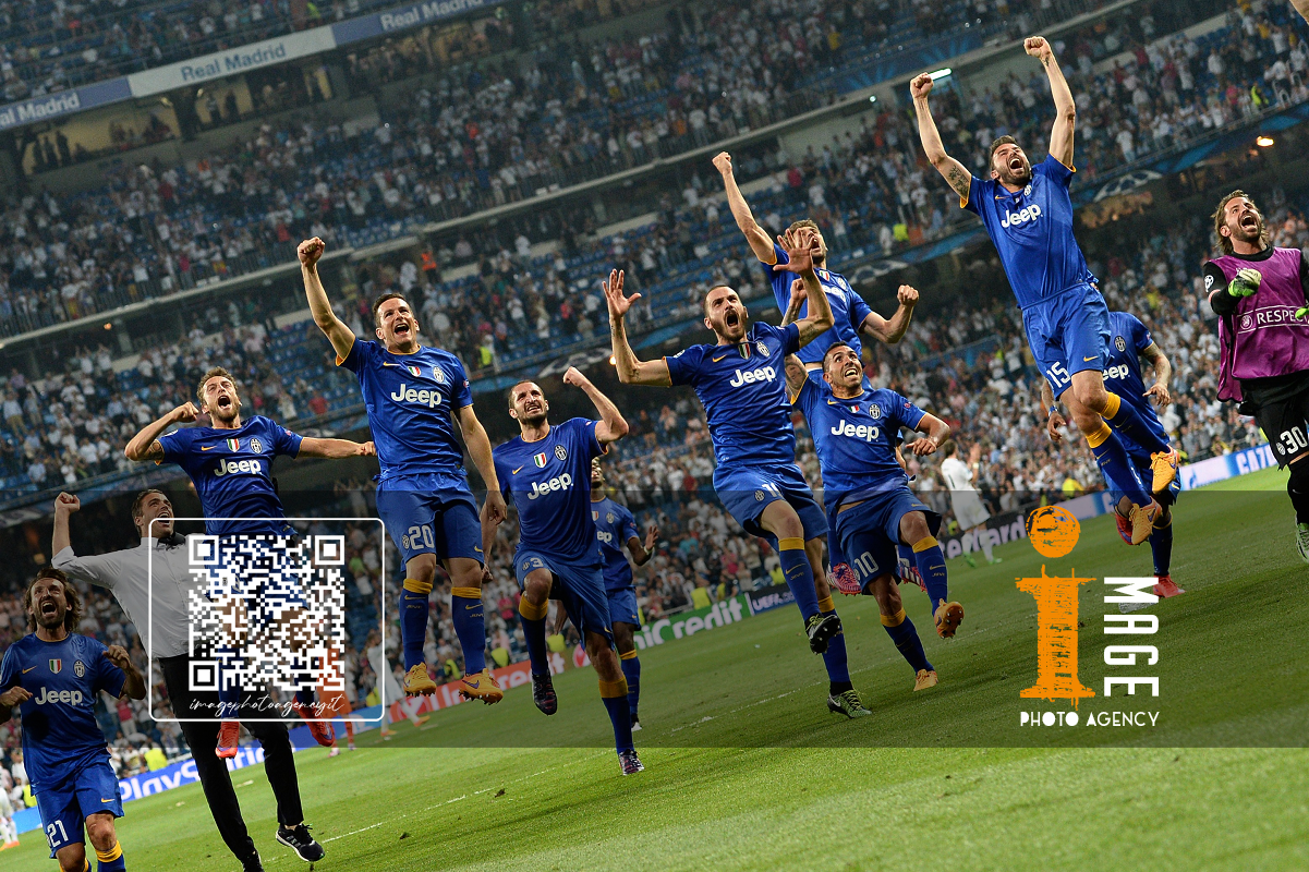 Mg Madrid (Spagna) 13/05/2015 - Champions League / Real Madrid-Juventus / foto Matteo Gribaudi/Image Sport nella foto: esultanza fine gara Giorgio Chiellini-Leonardo Bonucci