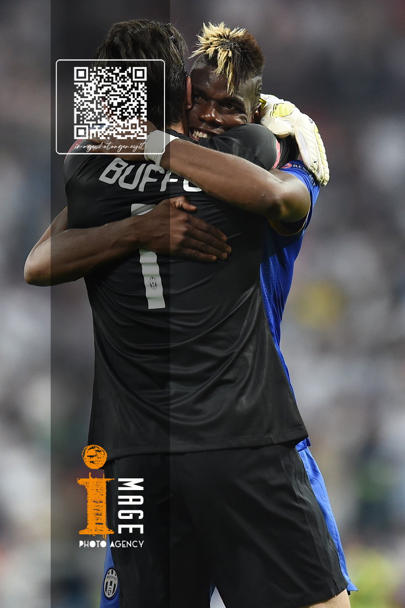 Madrid (Spagna) 13/05/2015 - Champions League / Real Madrid-Juventus / foto Imago/Image Sport nella foto: esultanza fine gara Paul Pogba-Gianluigi Buffon