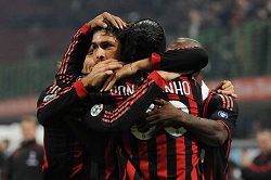 esultanza a fine gara Alexandre Pato-Massimo Ambrosini-Nelson Dida