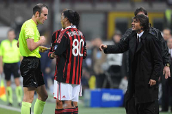 db Madrid (Spagna) 21/10/2009 - Champions League / Real Madrid-Milan / foto Daniele Buffa/Image Sport nella foto: Leonardo-Massimo Ambrosini-Thiago Silva-Mauro Tassotti