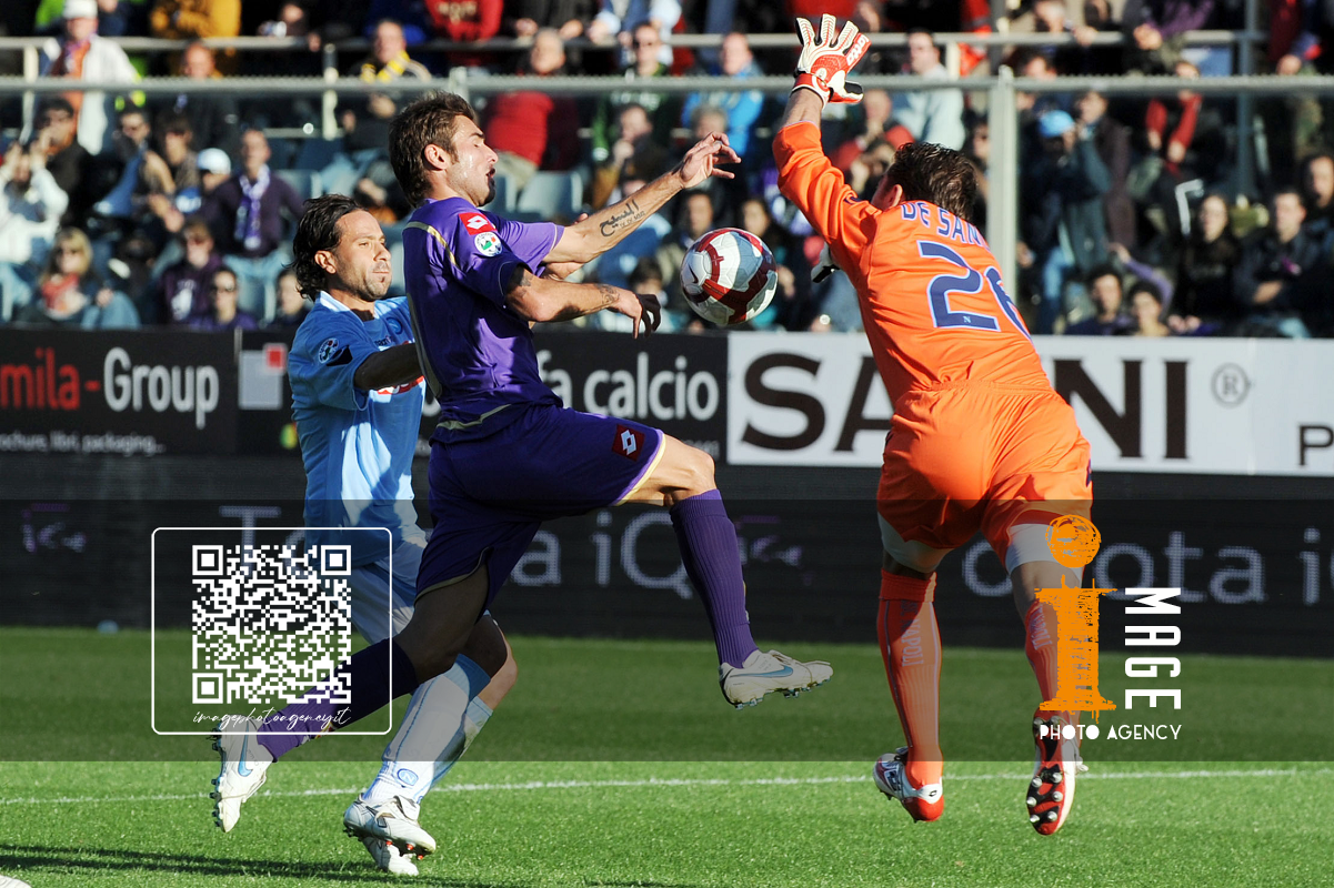 Db Firenze 25/10/2009 - campionato di calcio serie A / Fiorentina-Napoli / foto Daniele Buffa/Image Sport nella foto: Adrian Mutu-Gianluca Grava-Morgan De Sanctis