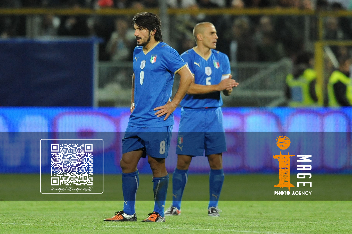 Db Parma 14/10/2009 - qualificazione Mondiale Sud Africa 2010 / Italia-Cipro / foto Daniele Buffa/Image Sport nella foto: delusione Gennaro Gattuso-Fabio Cannavaro