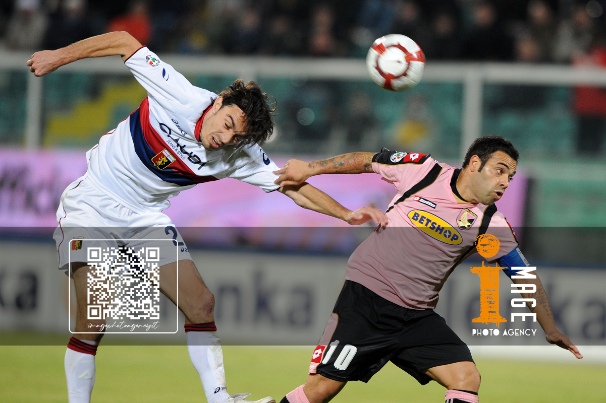 Ci Palermo 01/11/2009 - campionato di calcio serie A / Palermo-Genoa / foto Carmelo Imbesi/Image Sport nella foto: Giuseppe Biava-Fabrizio Miccoli