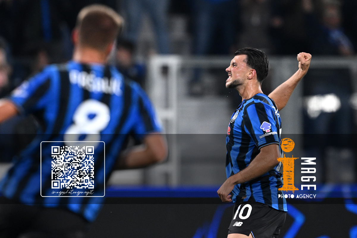 Mg Bergamo 30/09/2025 - Champions League / Atalanta-Club Brugge / foto Matteo Gribaudi/Image Sport nella foto: esultanza gol Lazar Samardzic