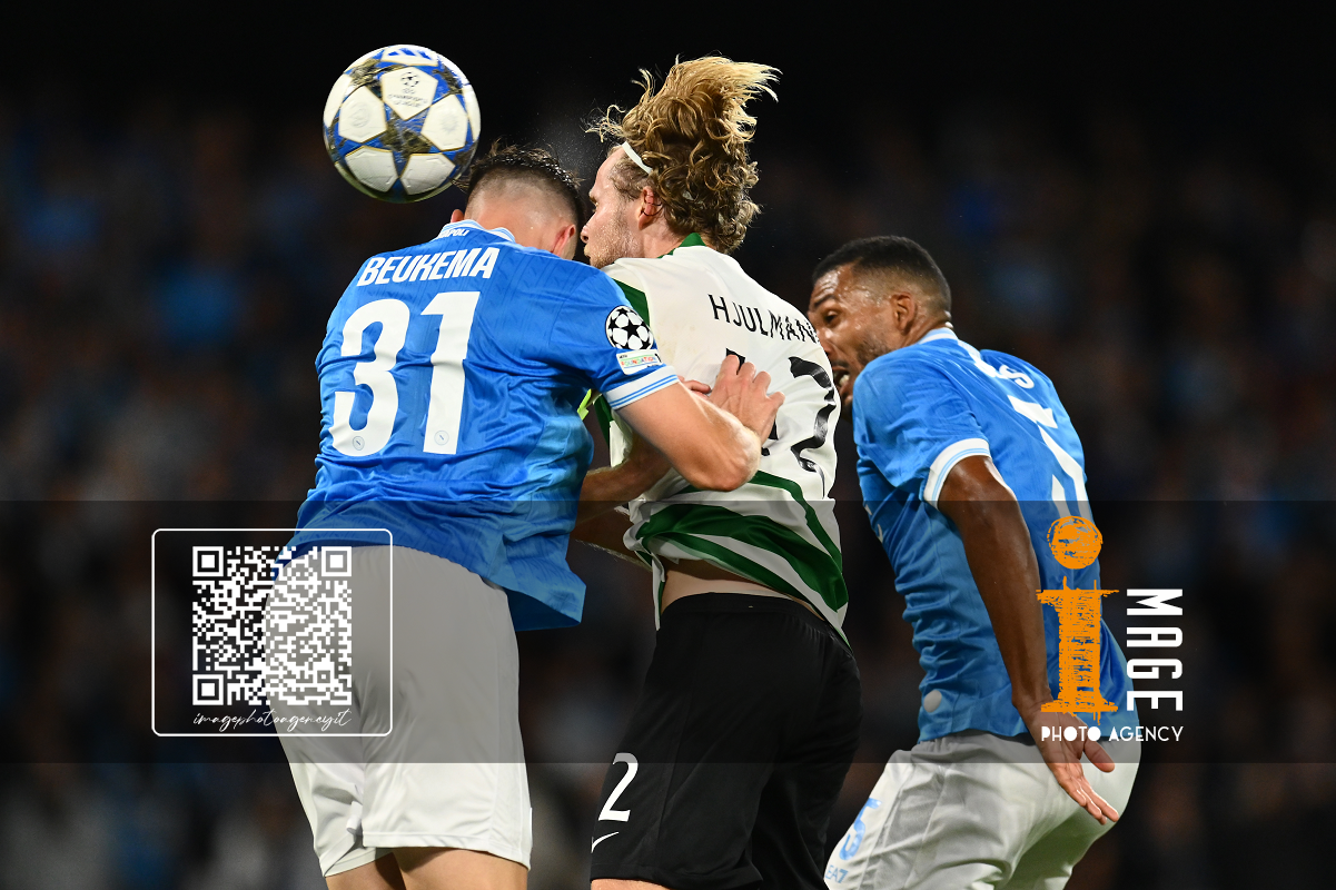 Dc Napoli 01/10/2025 - Champions League / Napoli-Sporting Lisbona / foto Domenico Cippitelli/Image Sport nella foto: Morten Hjulmand-Sam Beukema