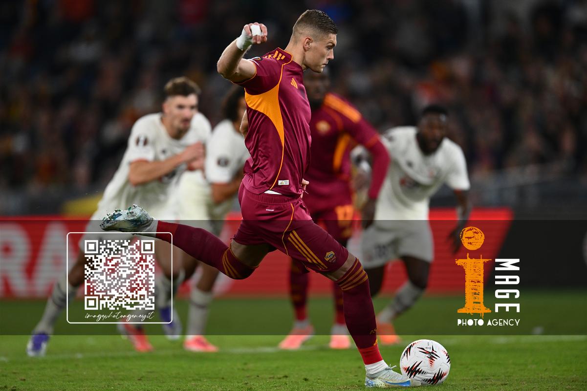 Dc Roma 02/10/2025 - Europa League / Roma-Lille / foto Domenico Cippitelli/Image Sport nella foto: rigore Artem Dovbyk