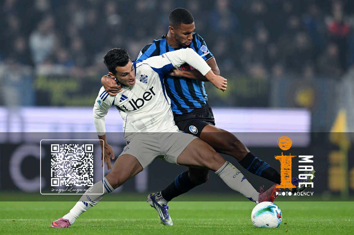 Mg Bergamo 04/10/2025 - campionato di calcio serie A / Atalanta-Como / foto Matteo Gribaudi/Image Sport nella foto: Anastasios Douvikas-Isak Hien