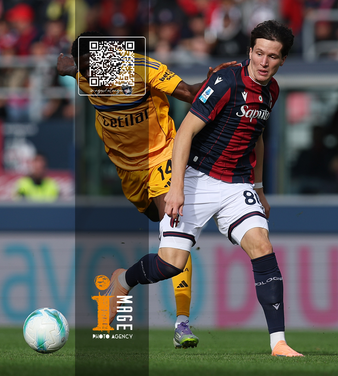 Mf Bologna 05/10/2025 - campionato di calcio serie A / Bologna-Pisa / foto Michele Finessi/Image Sport nella foto: Giovanni Fabbian-Ebenezer Akinsanmiro