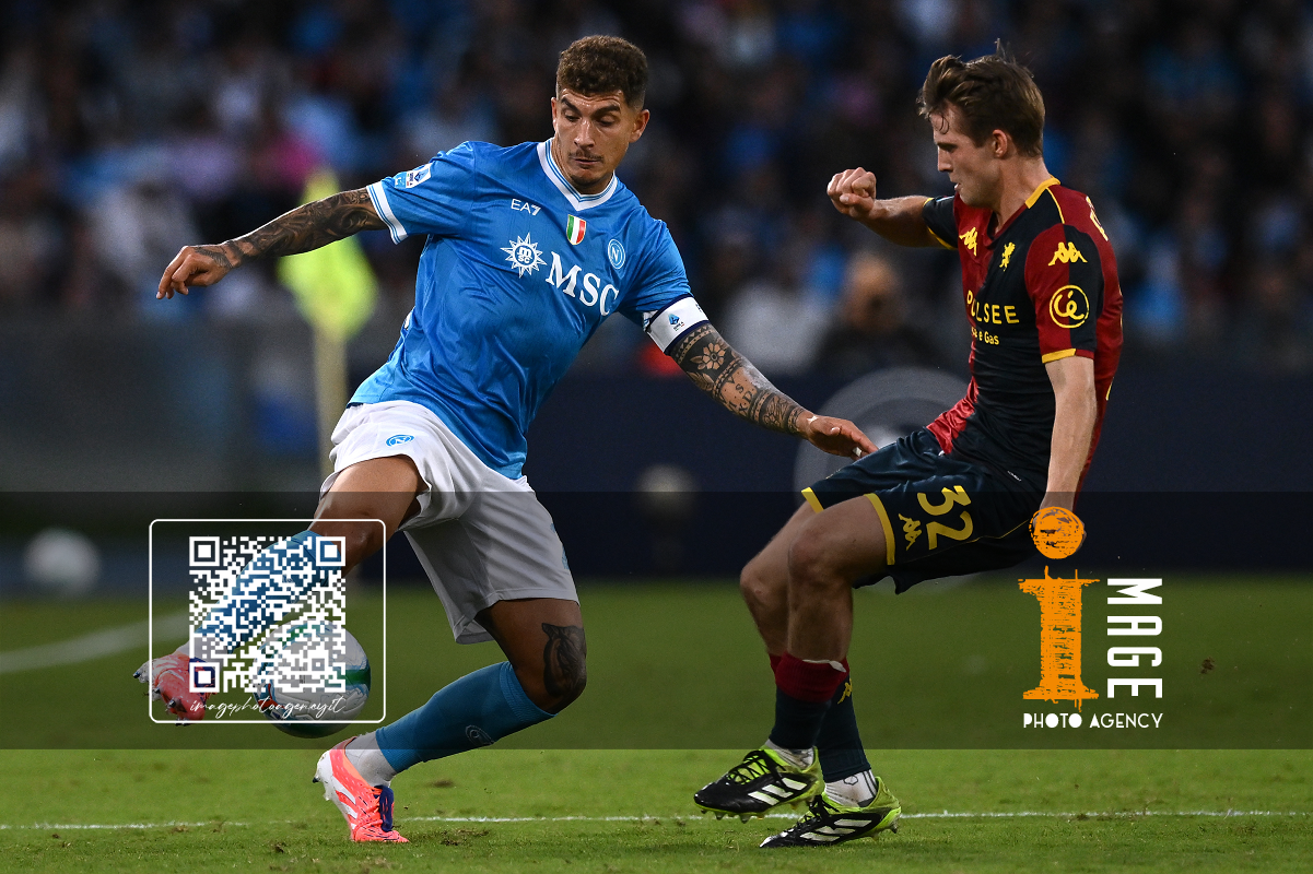 As Napoli 05/10/2025 - campionato di calcio serie A / Napoli-Genoa / foto Antonello Sammarco/Image Sport nella foto: Giovanni Di Lorenzo-Morten Frendrup