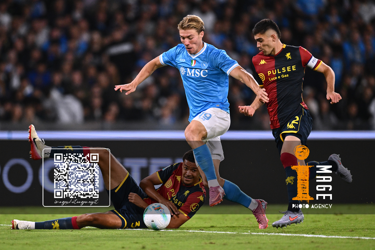 Dc Napoli 05/10/2025 - campionato di calcio serie A / Napoli-Genoa / foto Domenico Cippitelli/Image Sport nella foto: Rasmus Hojlund-Sebastian Otoa