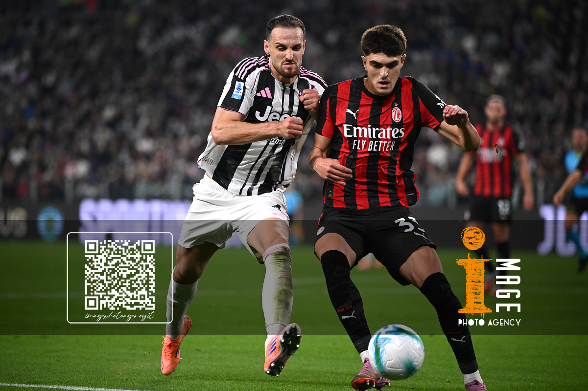 Cm Torino 05/10/2025 - campionato di calcio serie A / Juventus-Milan / foto Cristiano Mazzi/Image Sport nella foto: Federico Gatti-Davide Bartesachi