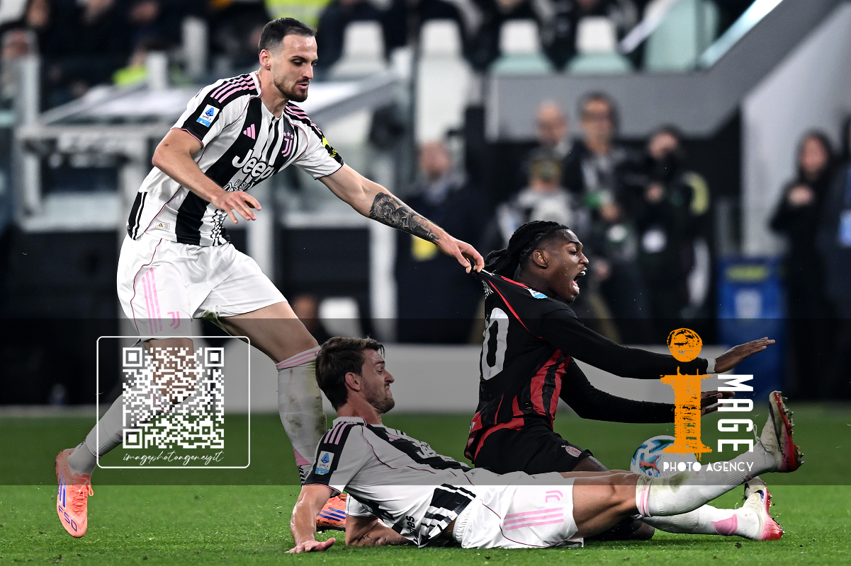 Db Torino 05/10/2025 - campionato di calcio serie A / Juventus-Milan / foto Daniele Buffa/Image Sport nella foto: Rafael Leao-Federico Gatti-Daniele Rugani