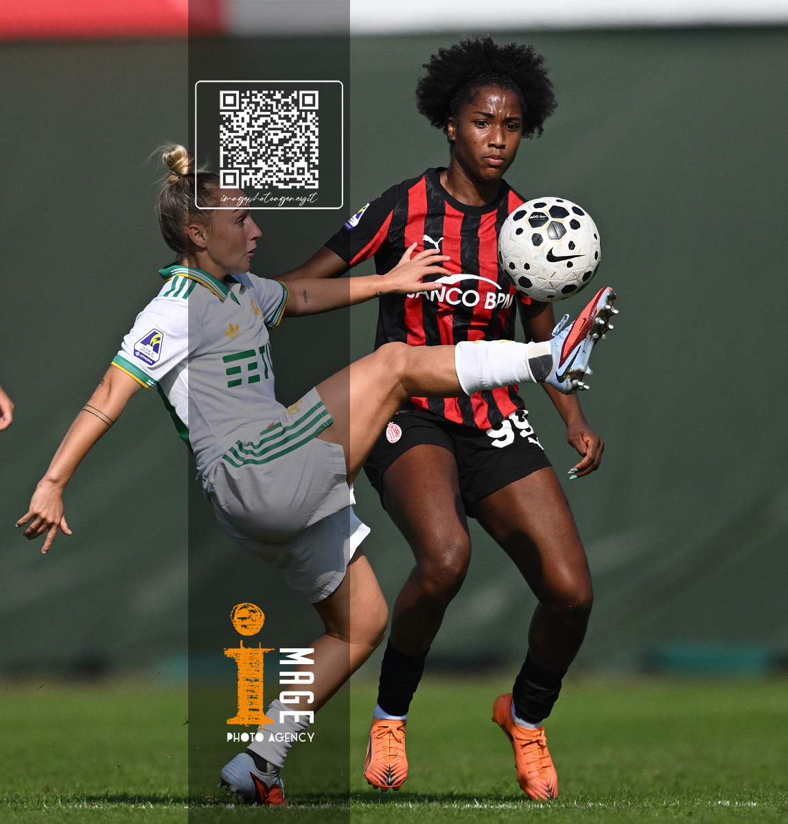 Mg Fiorenzuola 12/10/2025 - campionato di calcio serie A femminile / Milan-Roma / foto Matteo Gribaudi/Image Sport nella foto: Mary Chnate' Dompig-Giada Greggi