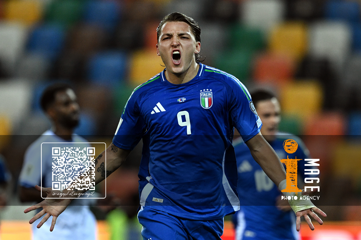 Mg Udine 14/10/2025 - qualificazioni Mondiali 2026 / Italia-Israele / foto Matteo Gribaudi/Image Sport nella foto: esultanza gol Mateo Retegui