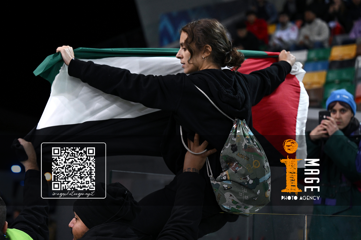Db Udine 14/10/2025 - qualificazioni Mondiali 2026 / Italia-Israele / foto Daniele Buffa/Image Sport nella foto: protesta Pro Palestina