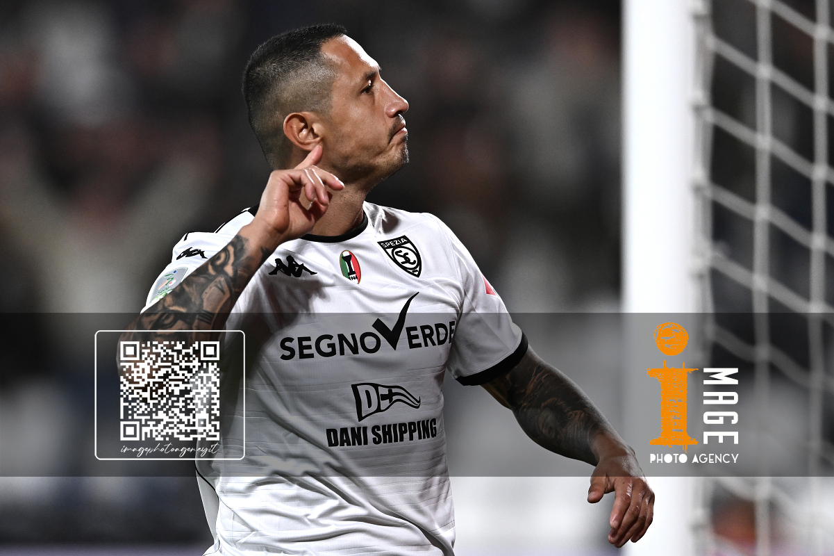 Mp La Spezia 18/10/2025 - campionato di calcio serie B / Spezia-Cesena / foto Matteo Papini/Image Sport nella foto: esultanza gol Gianluca Lapadula