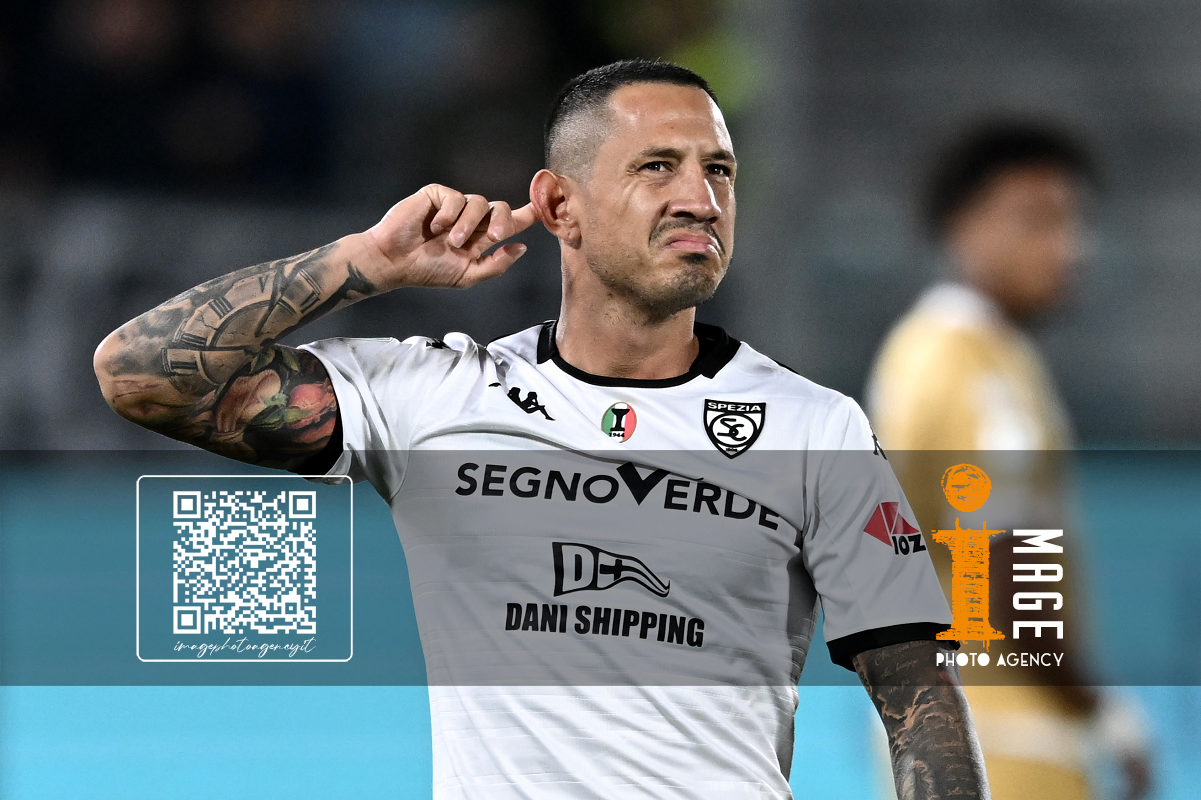 Mp La Spezia 18/10/2025 - campionato di calcio serie B / Spezia-Cesena / foto Matteo Papini/Image Sport nella foto: esultanza gol Gianluca Lapadula