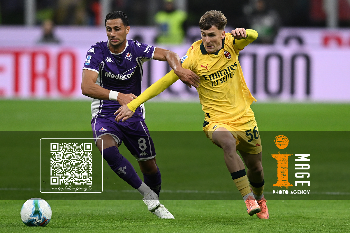 Db Milano 19/10/2025 - campionato di calcio serie A / Milan-Fiorentina / foto Daniele Buffa/Image Sport nella foto: Alexis Saelemaekers-Rolando Mandragora
