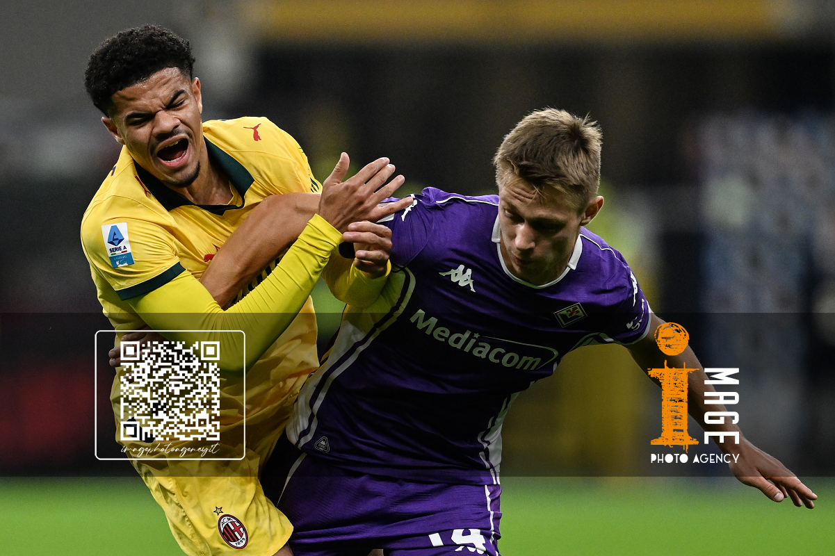 Fp Milano 19/10/2025 - campionato di calcio serie A / Milan-Fiorentina / foto Fabrizio Patrucco/Image Sport nella foto: Zachary Athekame-Hans Nicolussi Caviglia