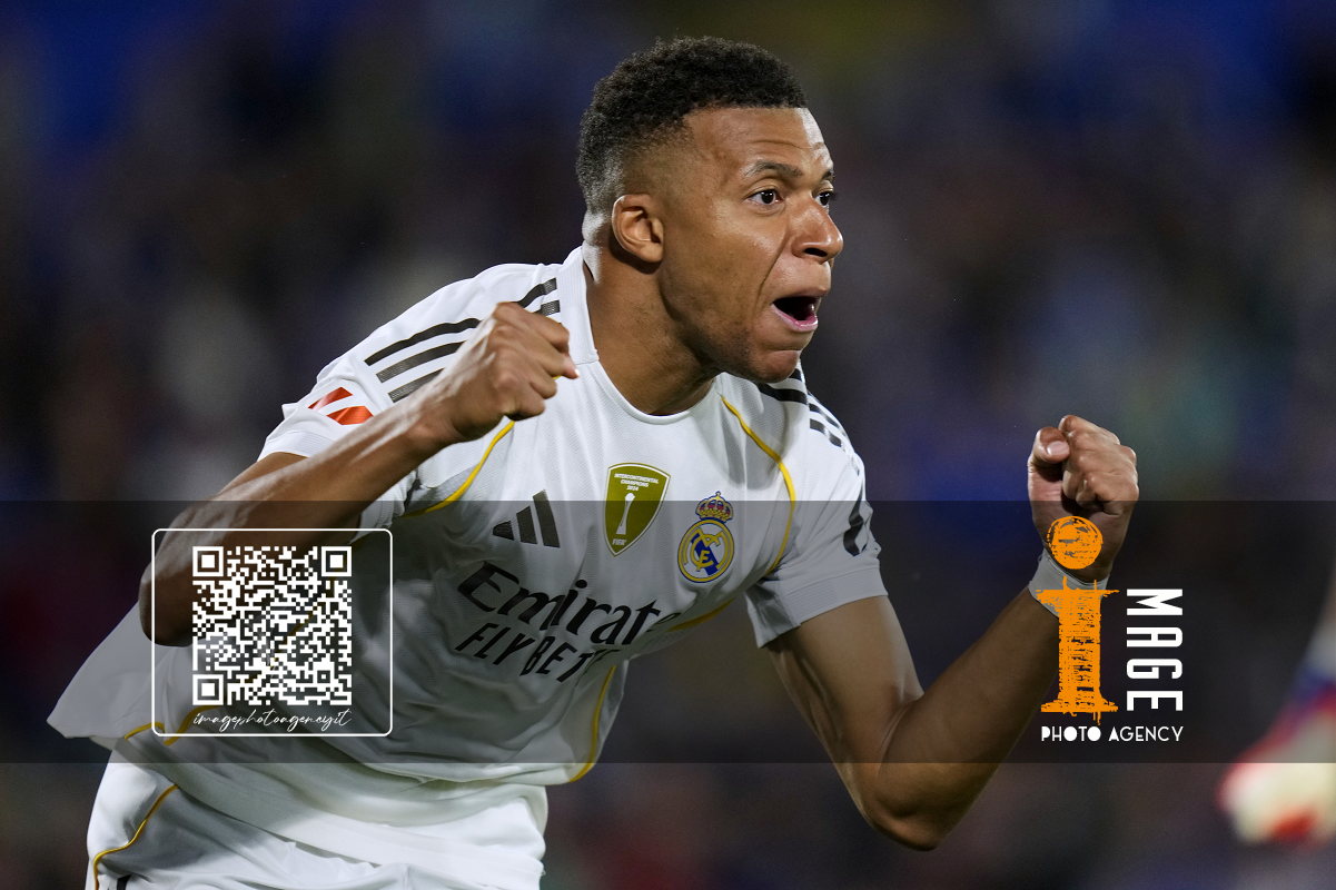 Pre Getafe 19/10/2025 - Liga / Getafe-Real Madrid / foto Pressinphoto/Image Sport nella foto: esultanza gol Kylian Mbappe’