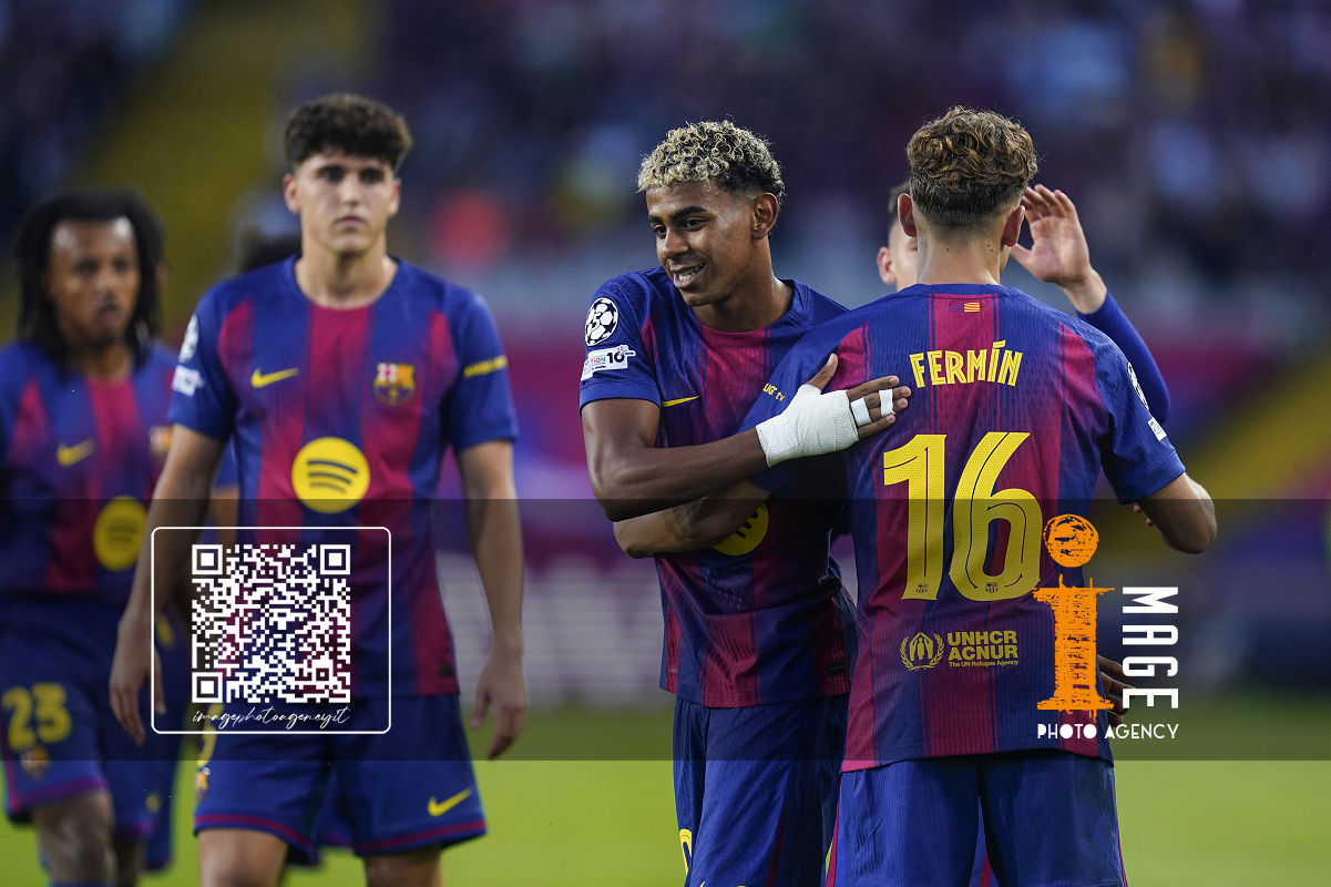 Pre Barcellona 21/10/2025 - Champions League / Barcellona-Olympiacos / foto Pressinphoto/Image Sport nella foto: esultanza gol Fermin Lopez